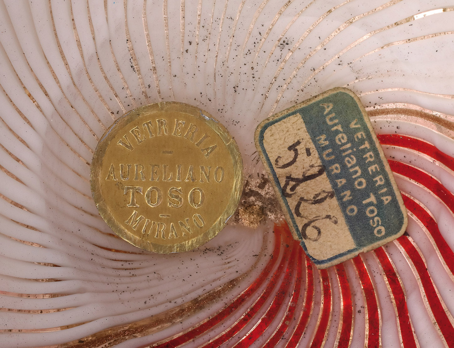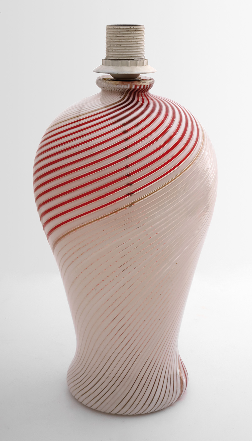 DINO MARTENS - AURELIANO TOSO, MURANO Lampada da tavolo in vetro con spirale rossa, Anni ‘50 Vetro, 40 x 20 cm Etichette sotto la base della Vetreria Aureliano Toso, Murano