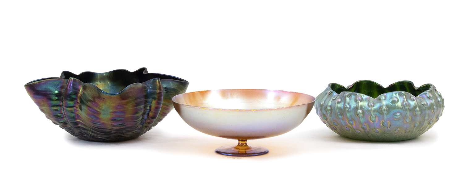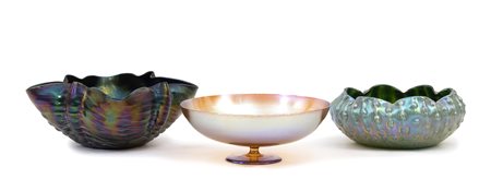 JOHANN LÖTZ WITWE - REPUBBLICA CECA Un’alzata e due ciotole in vetro opalino...