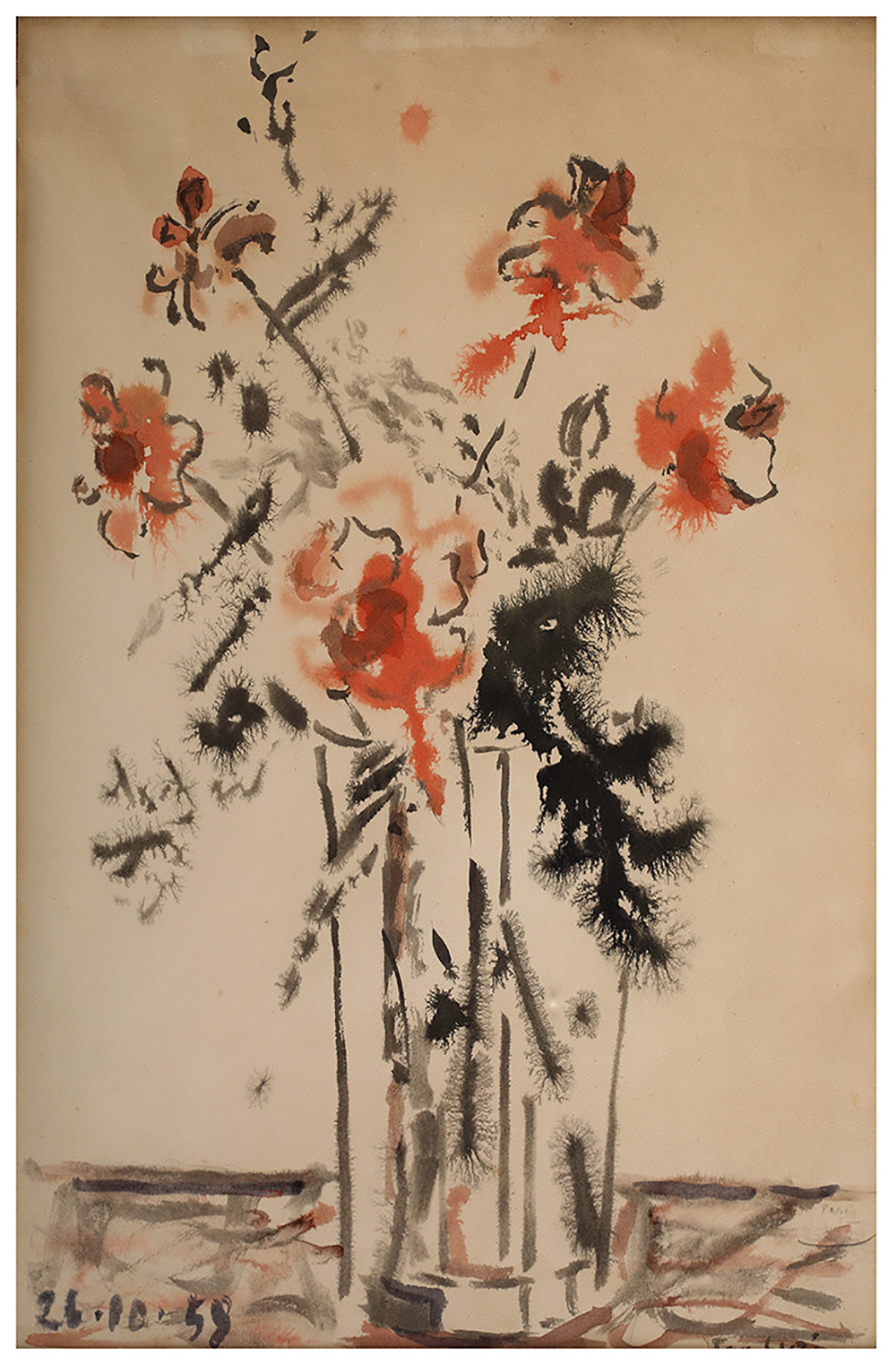ORFEO TAMBURI Vaso di fiori, 1958 Acquarello su carta, 49 x 32,5 cm Data in basso a sinistra: 26-10-58 Firma in basso a destra: Tamburi