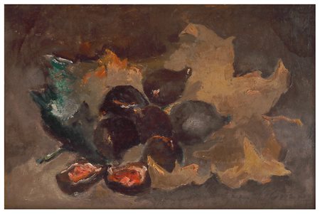 BEPPE GUZZI Natura morta con fichi, 1945 Olio su compensato, 23,5 x 35,5 cm...