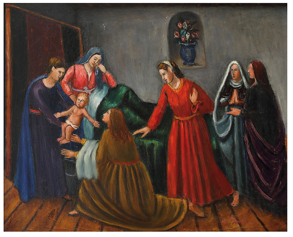 GISBERTO CERACCHINI Nascita di Maria, 1947 Olio su tavola, 60 x 75 cm Firma e data in basso a destra: G. Ceracchini 1947 ESPOSIZIONI “Gisberto Ceracchini (1899-1982)”, mostra antologica delle opere, Liceo Scientifico Statale A. da Sangallo, 24 maggio - 4 giugno 1989, Montepulciano