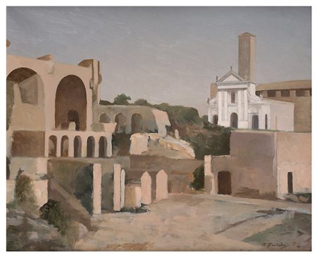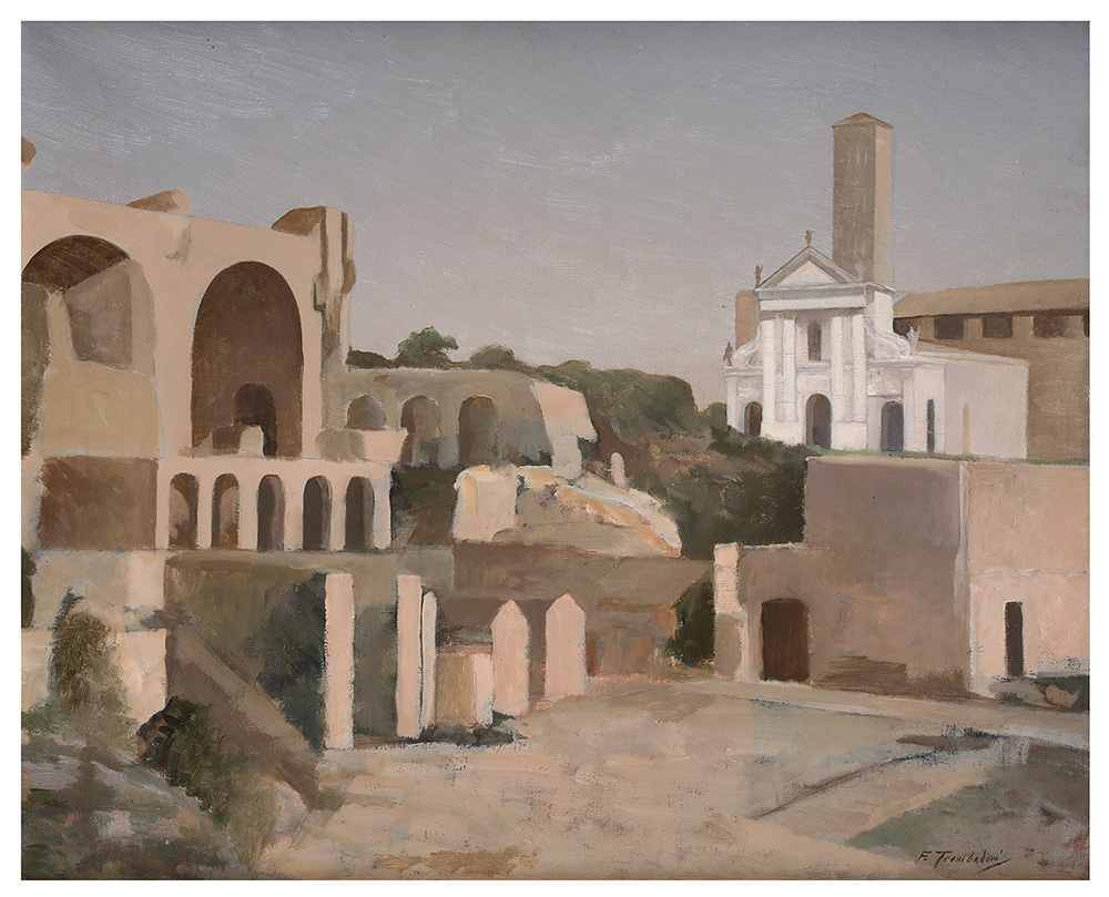 FRANCESCO TROMBADORI Santa Francesca Romana e la Basilica Olio su tela, 50 x 60 cm Firma in basso a destra: F. Trombadori