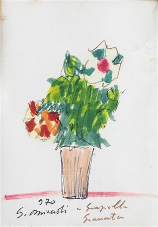 GIOVANNI OMICCIOLI Vasetto di fiori, 1970 Tecnica mista su carta, 16 x 11 cm...