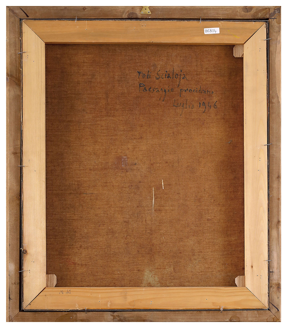 TOTI SCIALOJA Paesaggio procidano, 1946 Olio su tela, 70,5 x 59,5 cm Firma e data in basso al centro: Toti 46 Firma, titolo e data al retro: Toti Scialoja, Paesaggio procidano, luglio 1946