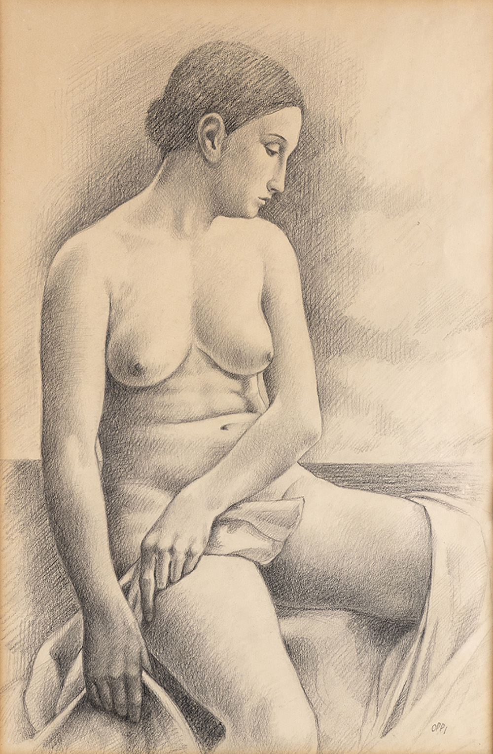 UBALDO OPPI Giovane donna al mare, 1926 Matita su cartoncino, 51 x 32 cm Firma in basso a destra: Oppi PROVENIENZA Collezione Oppi Foresi, Milano Collezione Stefanelli Torossi