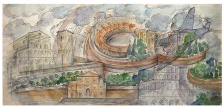 UBERTO BONETTI Lucca, Anni ‘30 Tecnica mista su carta, 25,5 x 53 cm Firma in basso a destra: Uberto Bonetti Autentica su foto di Adriana Bonetti PUBBLICAZIONI C. Giorgetti, Uberto Bonetti, “Il Futurismo ed altre passioni”, Maria Pacini Fazzi Editore, Massarosa, 2004, p. XIV, fig. 41