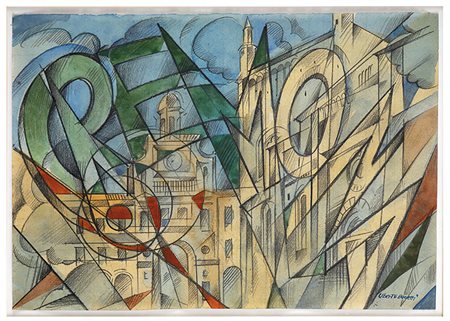 UBERTO BONETTI Cremona, Anni ‘30 Tecnica mista su carta, 20,5 x 29,5 cm Firma...