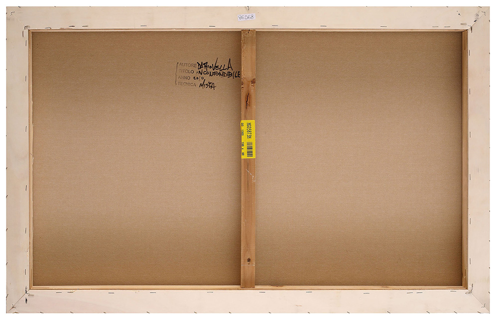 DARIO VELLA Inconfondibile, 2010 Tecnica mista su tela, 60 x 100 cm Firma in basso a destra: Dario Vella Firma, data e tecnica al retro: Dario Vella, 2010, Tecnica mista su tela Autentica su foto dell’Artista