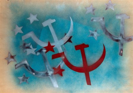 FRANCO ANGELI Falci e martelli Tecnica mista su carta, 70 x 100 cm