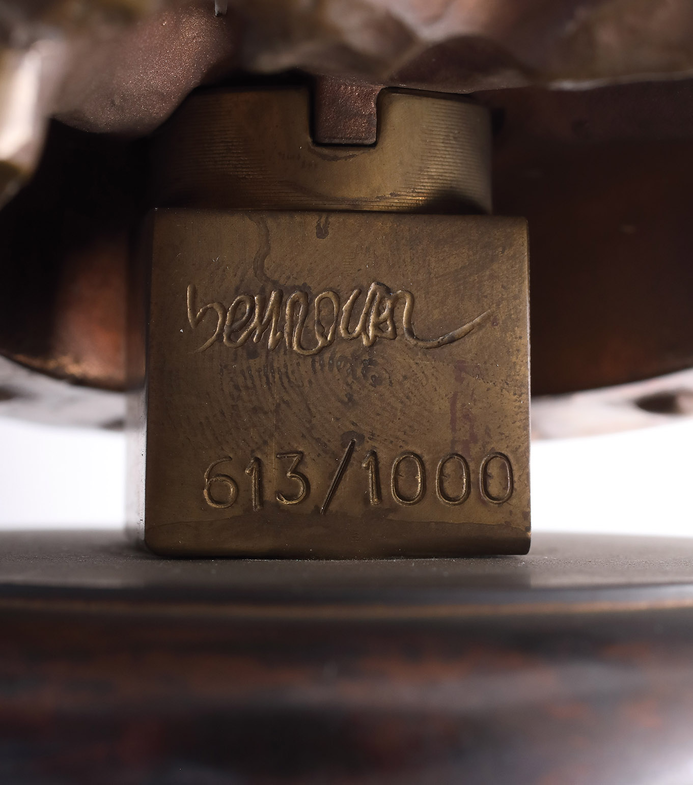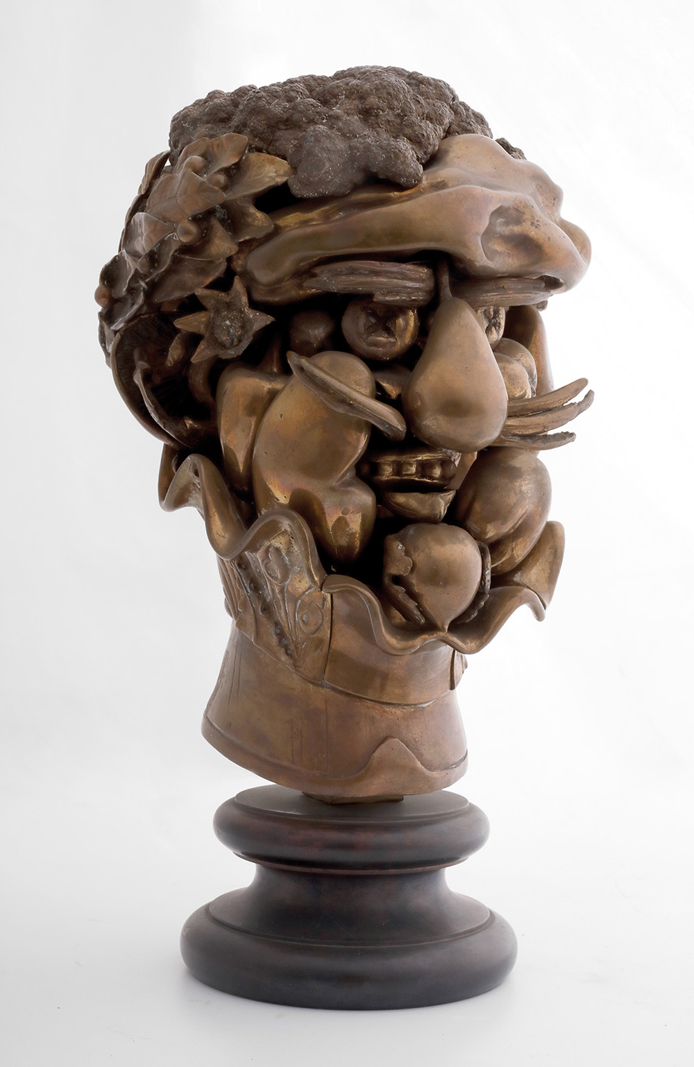 MIGUEL BERROCAL Omaggio ad Arcimboldo Scultura in bronzo ramato, h. 22 cm (h. 28 cm base inclusa) Firma e n° esemplare al retro: Barrocal 613/1000 PROVENIENZA Già Galleria Schubert, Milano