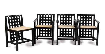 CASSINA - ITALIA Quattro sedie modello “Mackintosh” in legno laccato nero...