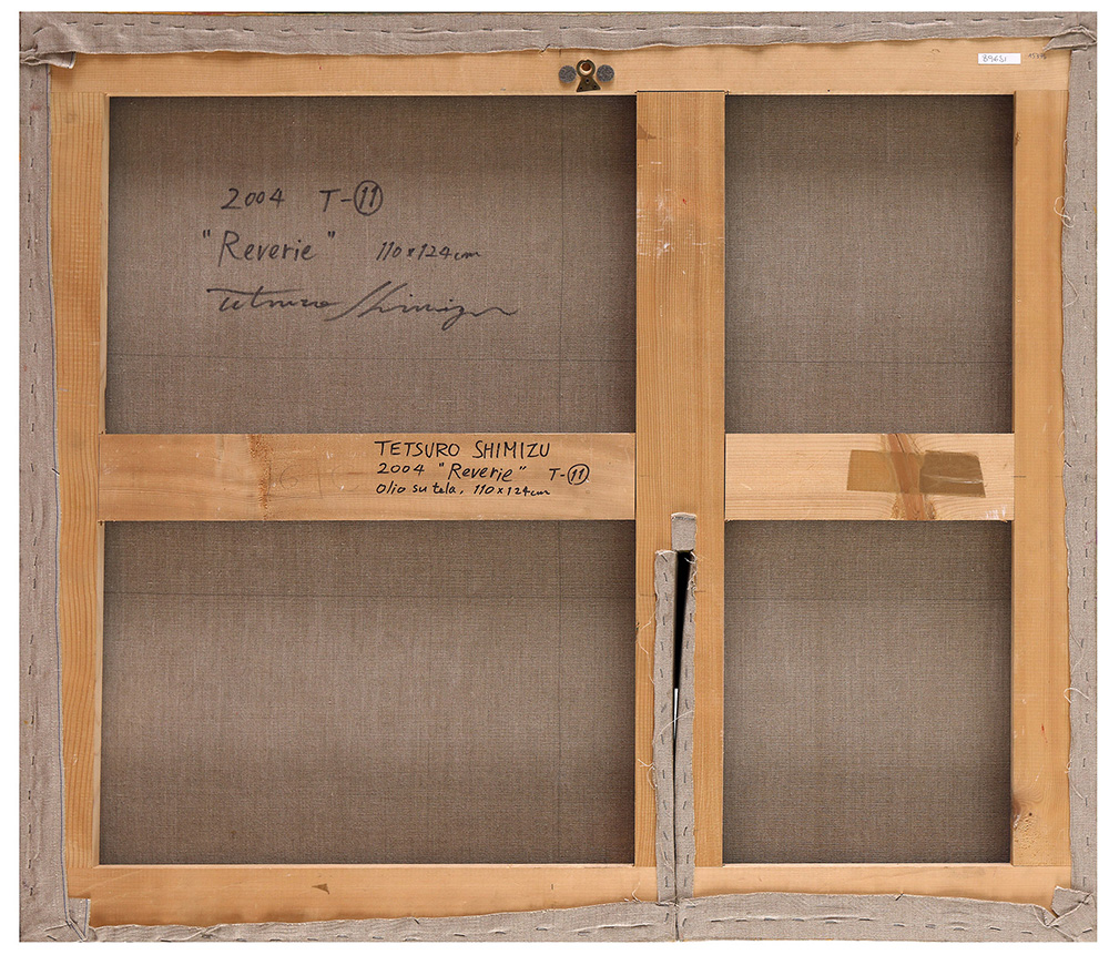TETSURO SHIMIZU Reverie, 2004 Acrilico e tecnica mista su tela, 110 x 124 cm Data, titolo e firma al retro: 2004 Reverie Shimizu Autentica su foto dell’Artista, 2004