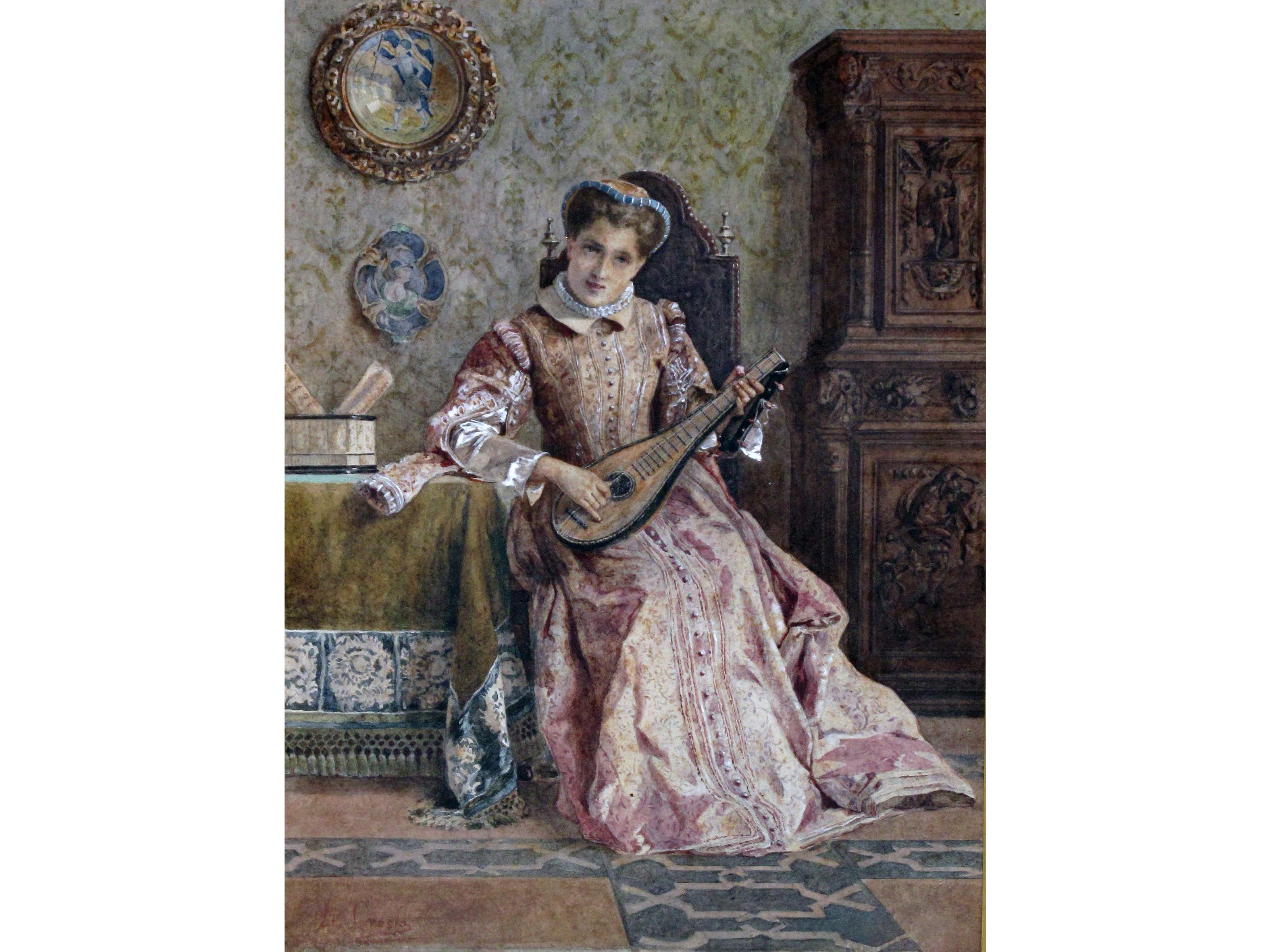 Luigi Crosio (Acqui Terme 1835-Torino 1915) La dama e la musica Acquarello su carta Firmato Misure 34x25 cm