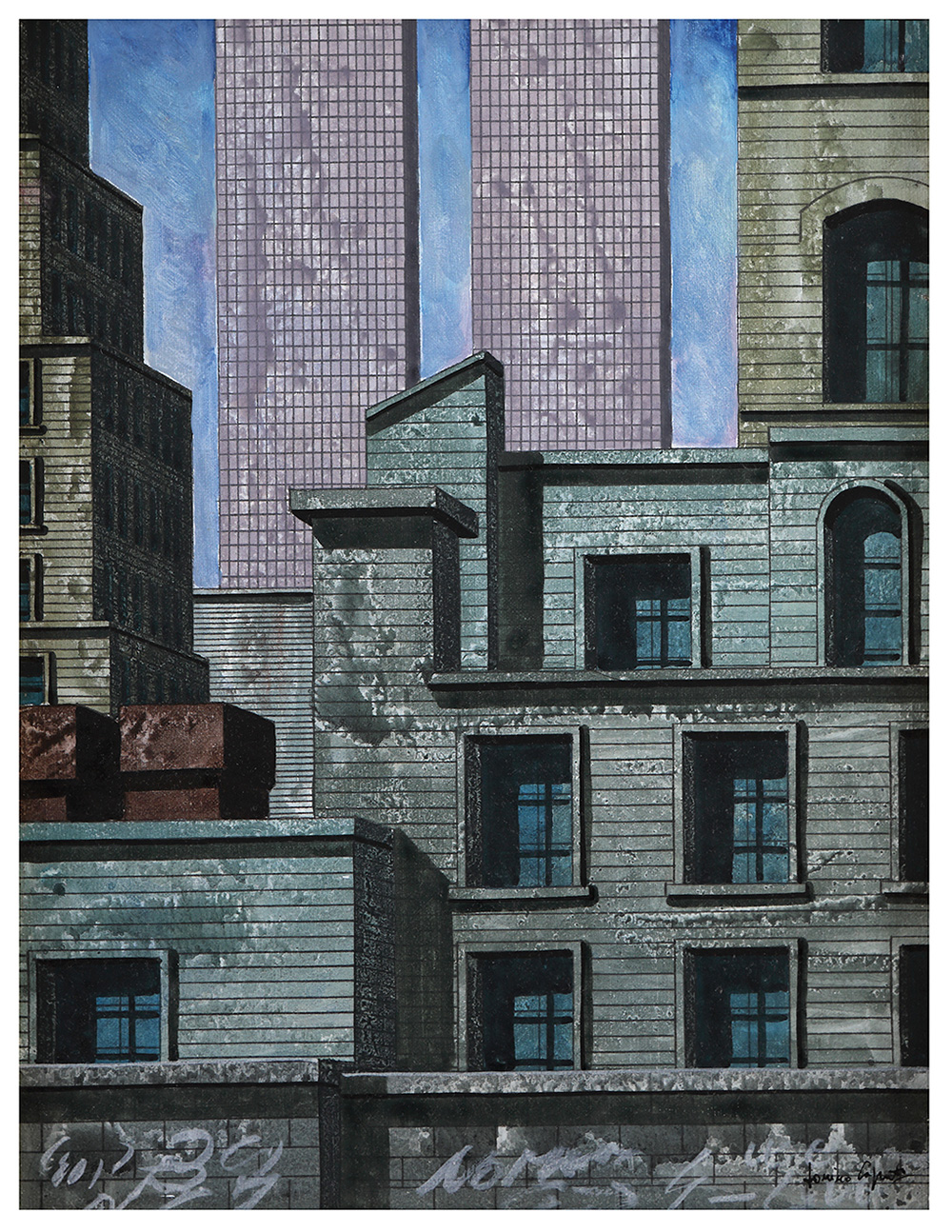 TONINO CAPUTO South Town, Tecnica mista su carta, 62 x 47 cm circa Firma in basso a destra: Tonino Caputo