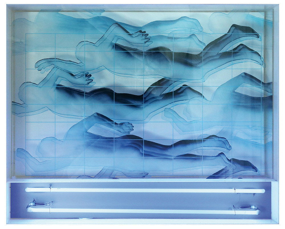 VINCENZO CECCATO Movimento spazio luce, 2017 Inkjet su plexiglass, tela e neon, 81,2 x 101 cm
