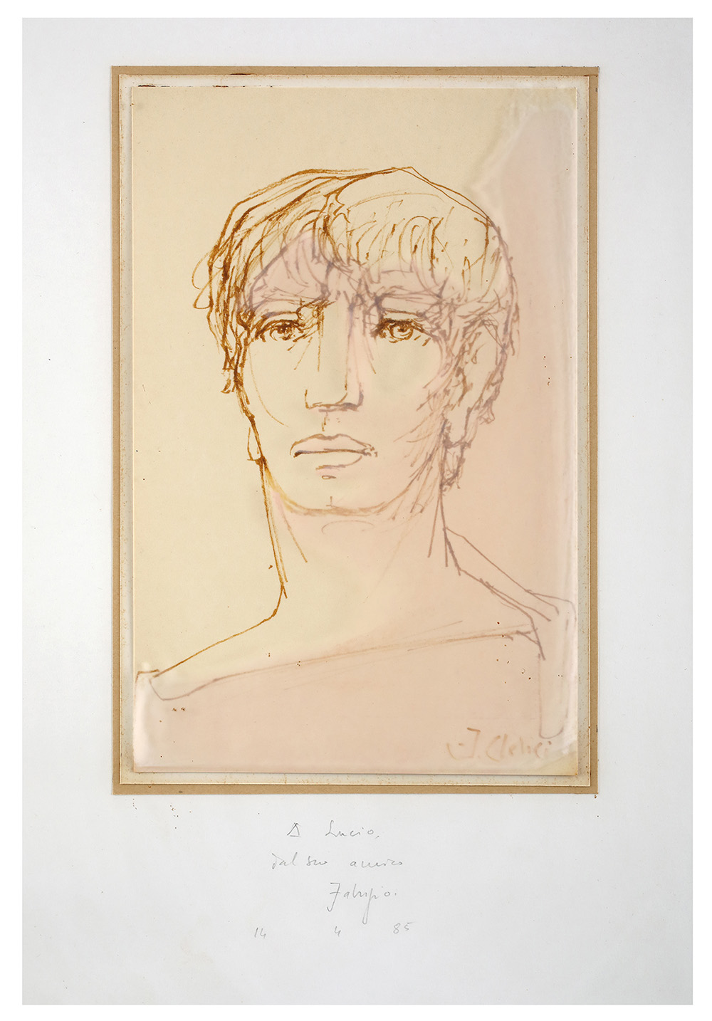 FABRIZIO CLERICI Ritratto di uomo, 1985 Tecnica mista su carta, 33 x 20,5 cm (foglio, 70 x 50 cm) Firma in basso a destra: F. Clerici Dedica e data in basso al centro: “A Lucio, dal suo amico Fabrizio”, 14-4-85