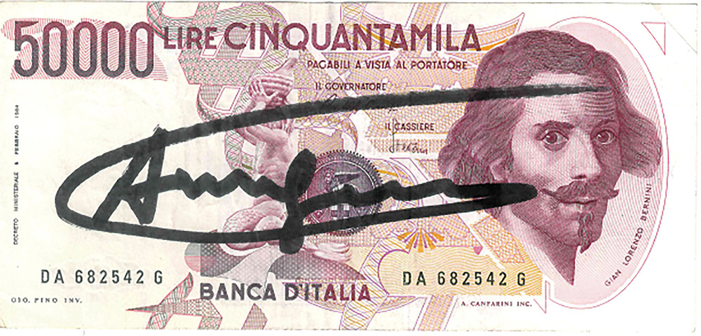 ANDY WARHOL Cinquantamila Lire, 1984 Stampa su carta, 15 x 7 cm Firma sul...