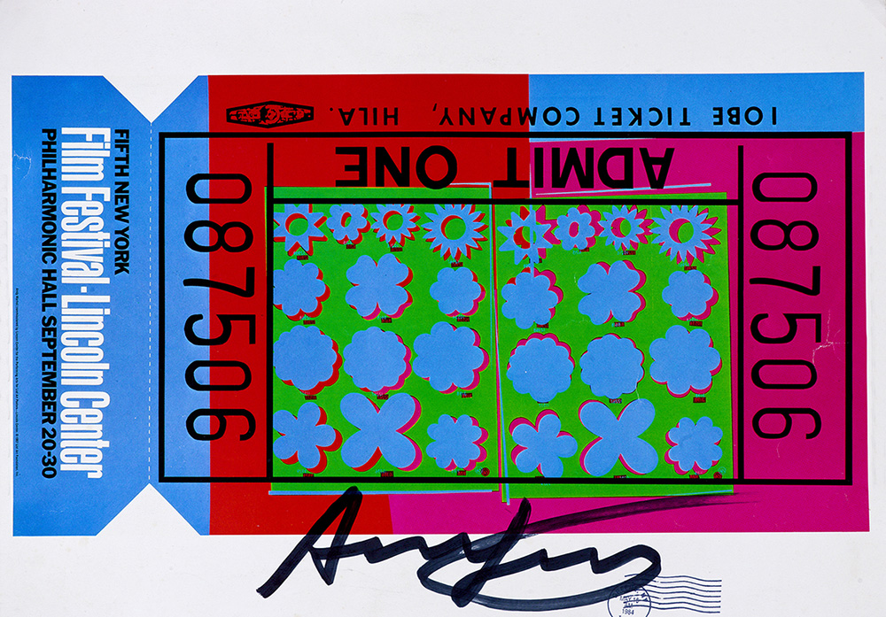 Affiche realizzata per il New York Film Festival al Lincoln Center Philarmonic Hall. L’immagine si riferisce a quella di formato 114,3 x 61 cm riportata sul catalogo “Andy Warhol The Complete Commissioned Posters 1964 - 1987”, No. 6 del 1967, commissionata a Warhol dal Lincoln Center per il New York Film Festival, quinta edizione dell’evento e citata sul catalogo ragionato a cura di F. Feldman, J. Schellmann, C. Defendi, “Andy Warhol Prints: A Catalogue Raisonne 1962-1987”, Distributed Art Pub Inc., 2003, N.II. N.II.13.
