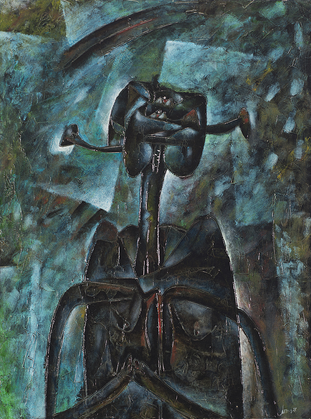 Gianni Dova (Roma 1925 - Milano 1991)"Personaggio ansioso" 1957smalto su...