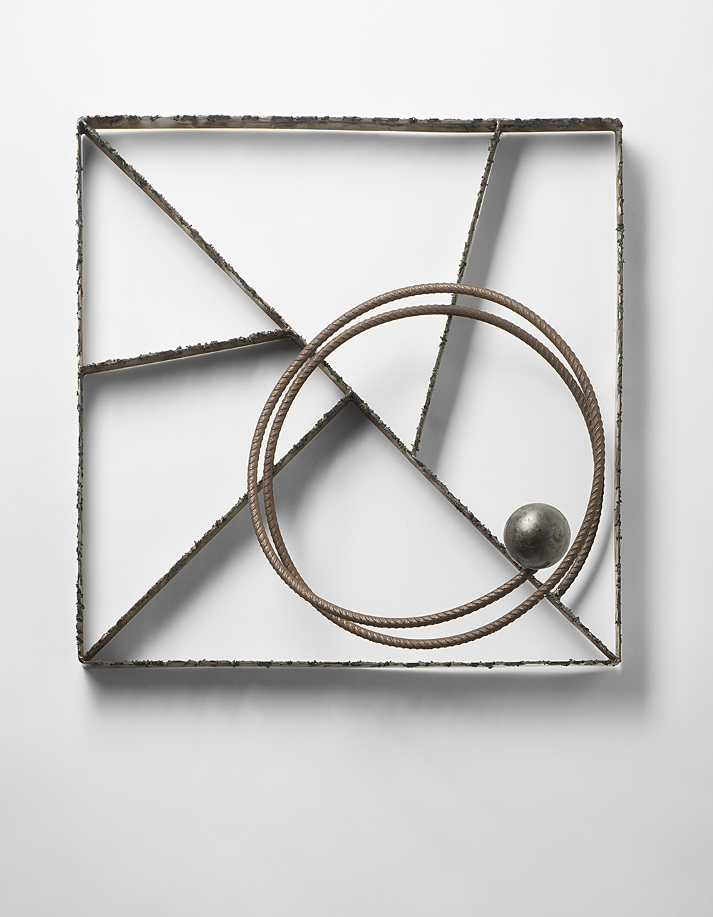 Eliseo Mattiacci (Cagli 1940) "Contatto" 2003 acciaio inox e ferro cm...