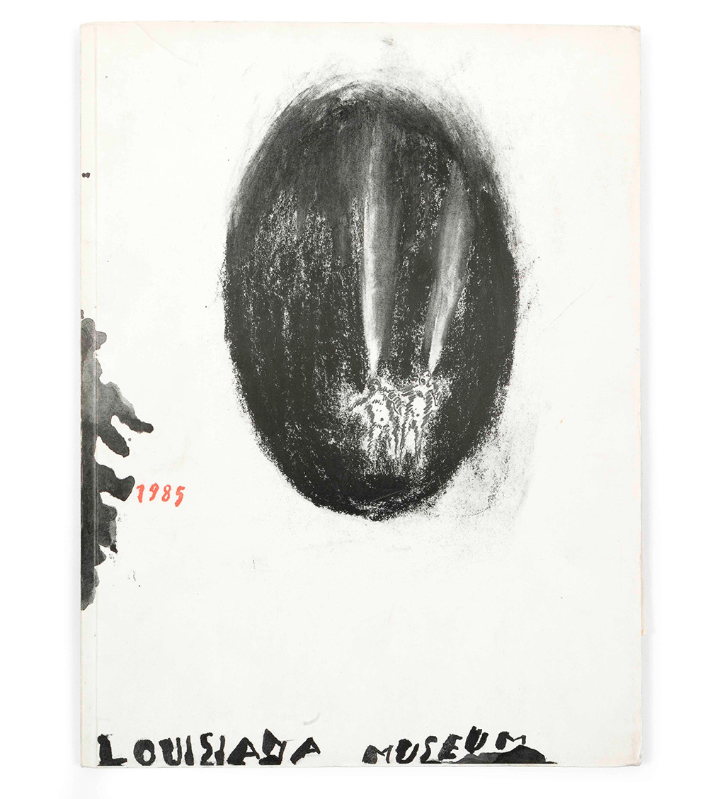 Enzo Cucchi (1949), “IL DESERTO DELLA SCULTURA” Catalogo della mostra al Louisiana Museum incisione originale di Cucchi firmata, numerata e dedicata a importante critica italiana es. 14/90 Edited by Bernd Kluser, 1985