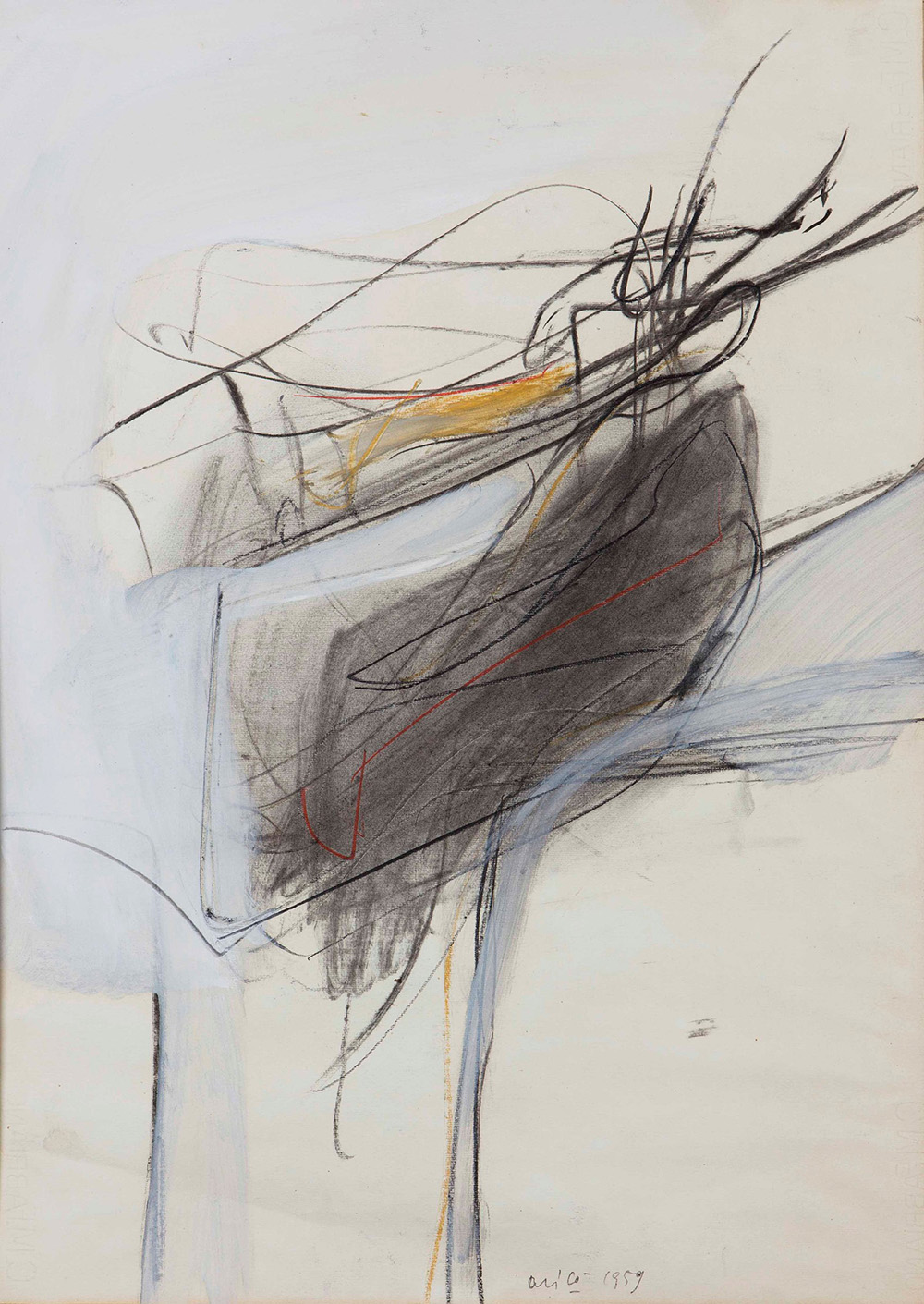 Rodolfo Aricò (1930-2002), Senza titolo, 1959 tecnica mista su carta Fabriano, cm 65x45 firmato e datato in basso al centro Il materiale relativo alle opere è stato presentato all’Archivio Rodolfo Aricò, Milano Provenienza: Collezione privata, Milano