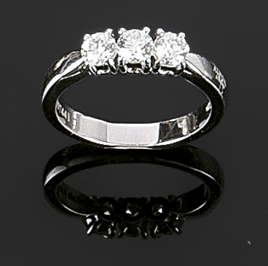 ANELLO Anello in oro bianco, modello trilogy, con tre diamanti taglio brillante rotondo per complessivi ct 0,74, firmato "Alfieri & St.John", ref. 257441 Peso gr. 5,40