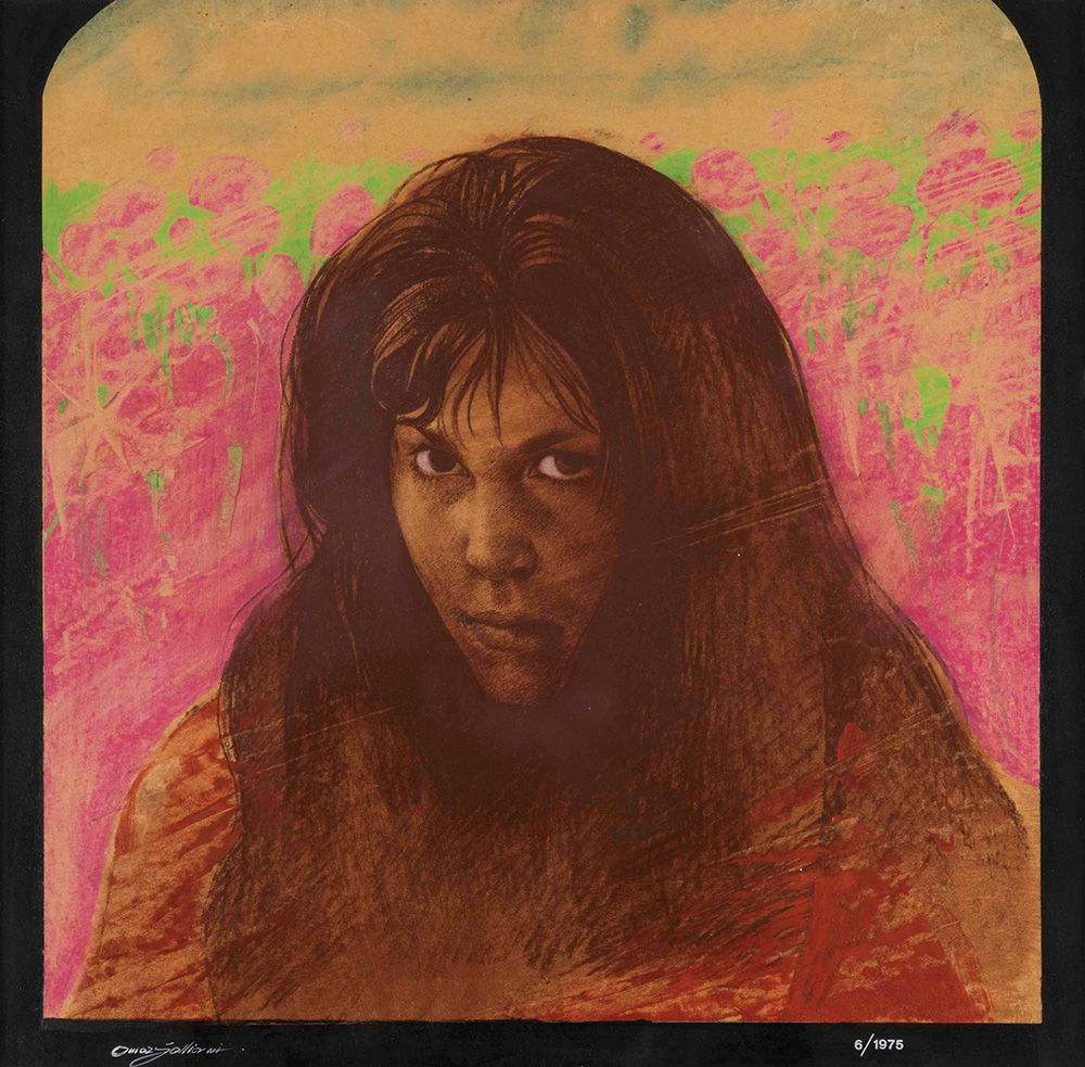 Omar Galliani (1954), Beatrice, 1975 tecnica mista su masonite, cm 50x50...