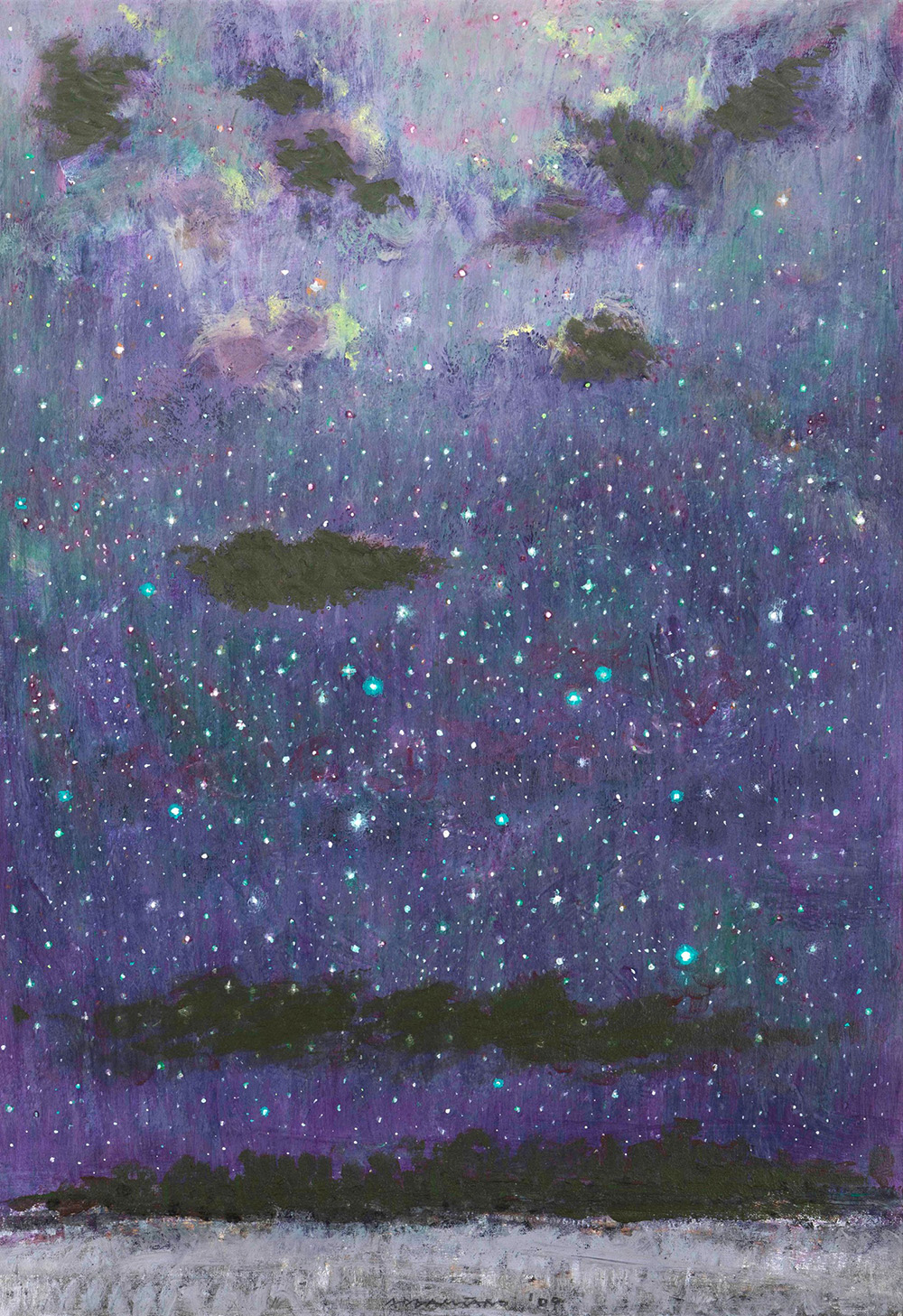 Natale Addamiano (1943), Cielo stellato, 2009 olio su tela, cm 50x35 firmato e datato in basso al centro firmato, intitolato e datato al retro Autentica su fotografia dell'artista L’opera si presenta in buono stato conservativo
