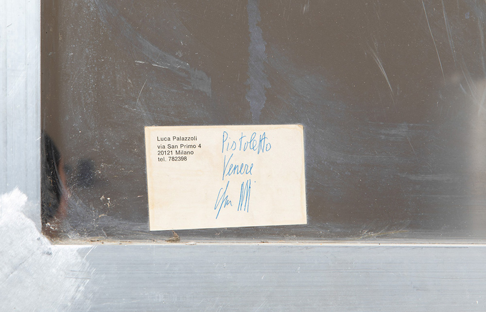 Michelangelo Pistoletto (1933), La Venere con la pipa, 1973 litografia a colori su acciaio Inox lucidato a specchio, cm 120x150,5 firmata e datata al retro es. 13/60 Etichetta al retro dello Studio Luca Palazzoli, Milano L’opera si presenta in buono stato conservativo