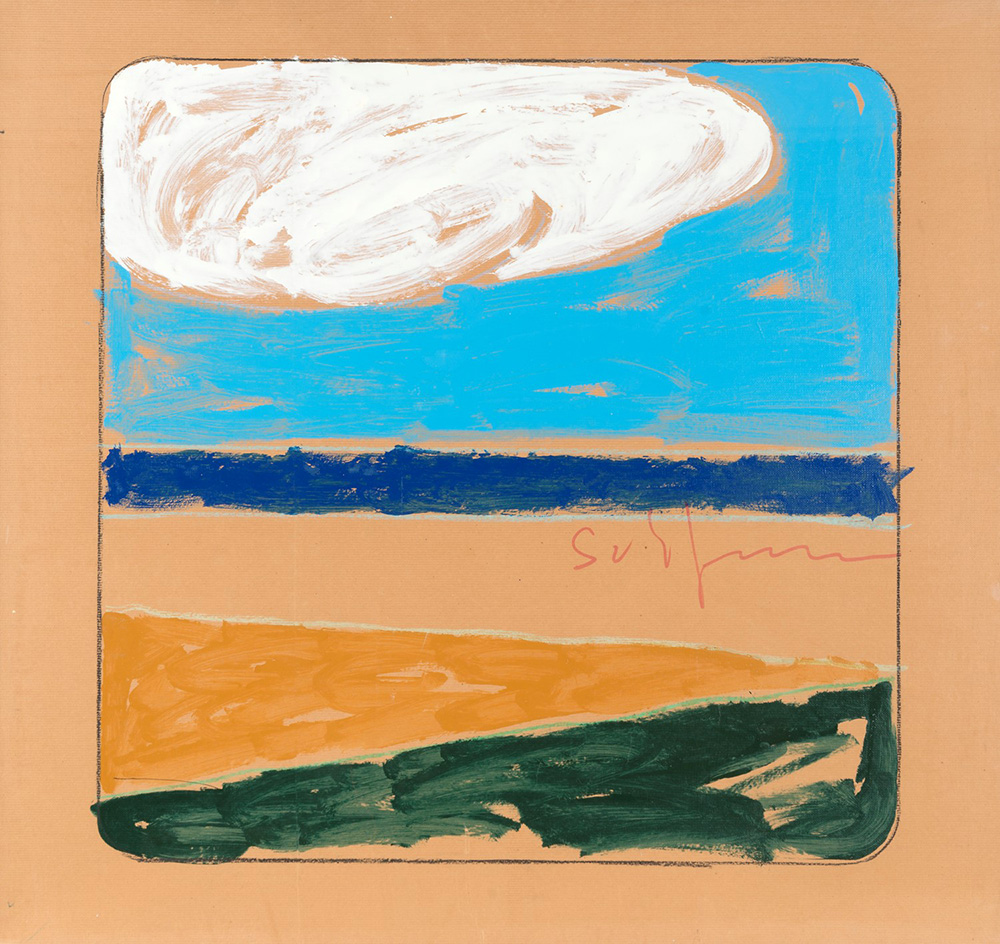 Mario Schifano (1934-1998), Senza titolo, 1974-76, smalto e pastello su carta intelata, cm 101x106 Firmato al centro verso destra: Schifano Collezione privata.