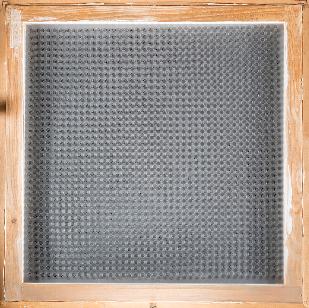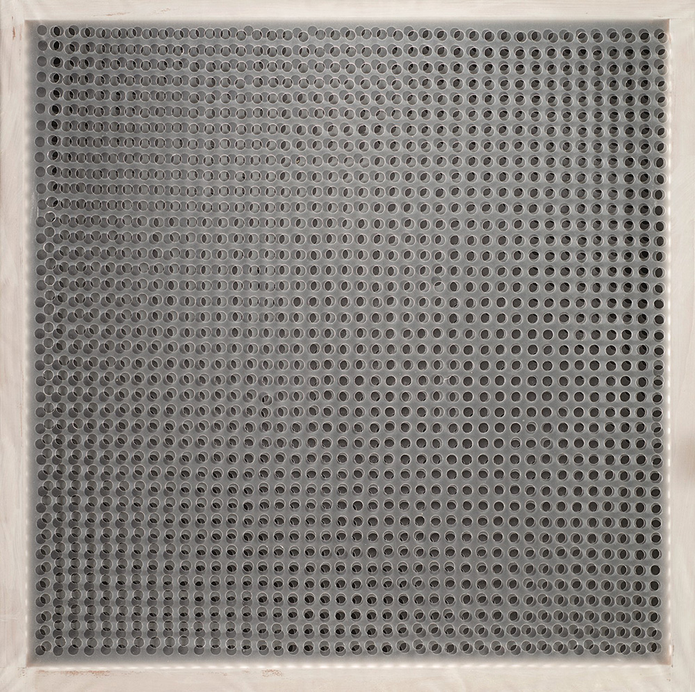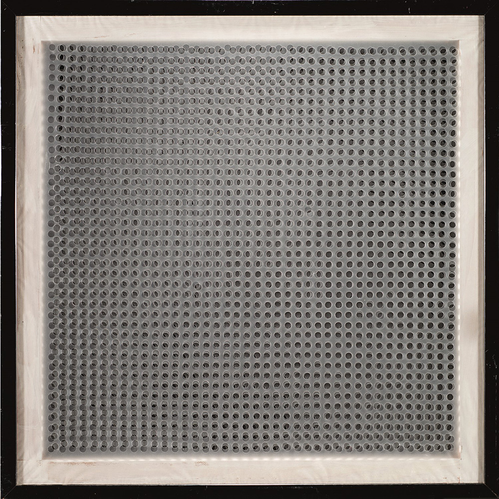 Dadamaino (1930-2004), Volume a moduli sfasati, 1960, plastica fustellata su doppio telaio , cm 70x70 Firmato, titolato e datato al verso: Dadamaino, Volume a moduli sfasati - 1960 Milano, collezione privata.
