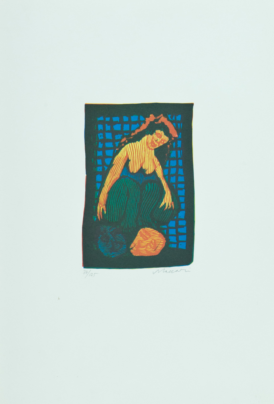 Mino Maccari Figura Linoleografia, cm. 19x13, su carta di cm. 50x35, es. 34/125 Firma in basso a destra, tiratura in basso a sinistra.