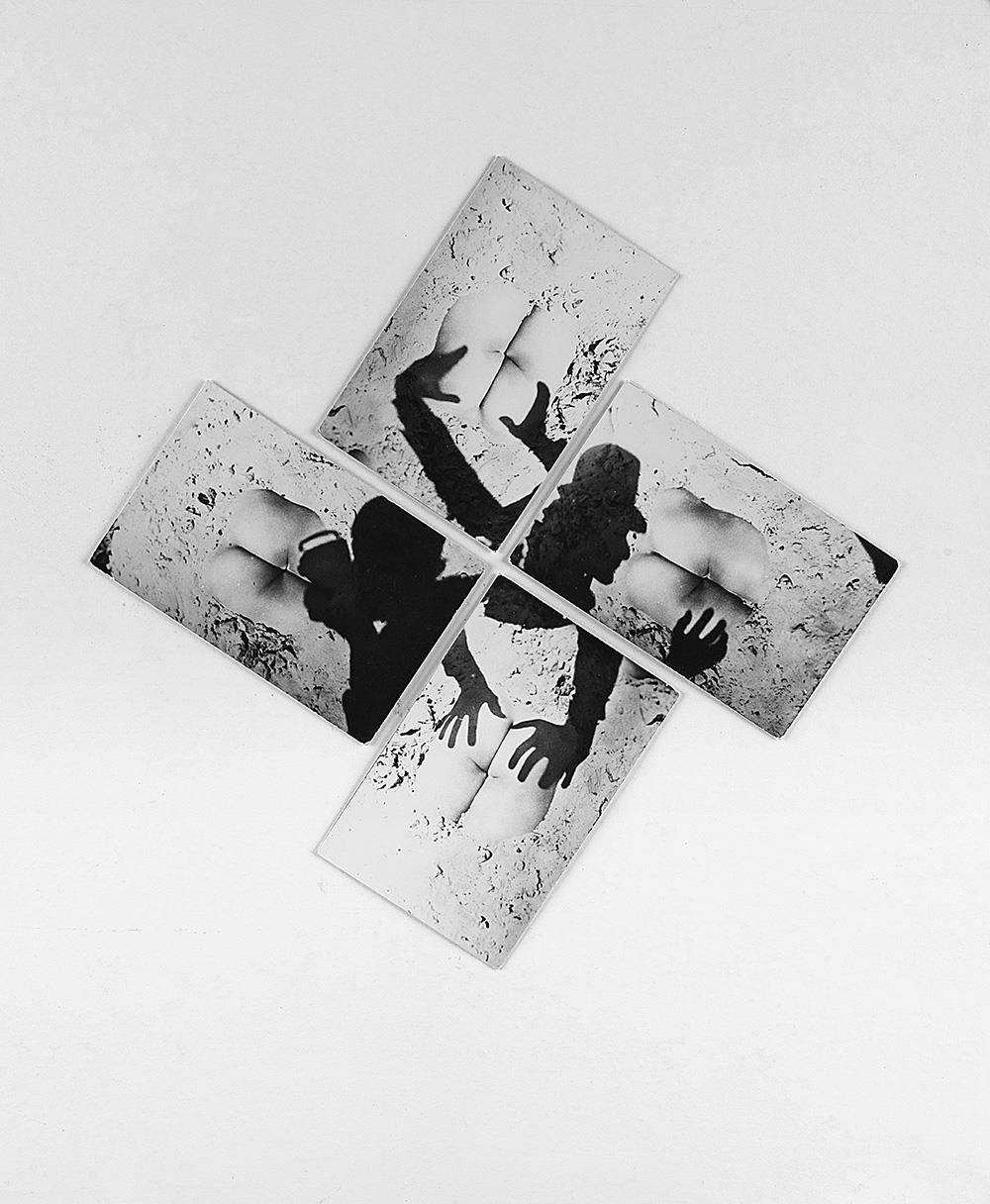 Fotomontaggio composto da quatro stampe fotografiche vintage alla gelatina e sali d'argento montate su cartoncino.