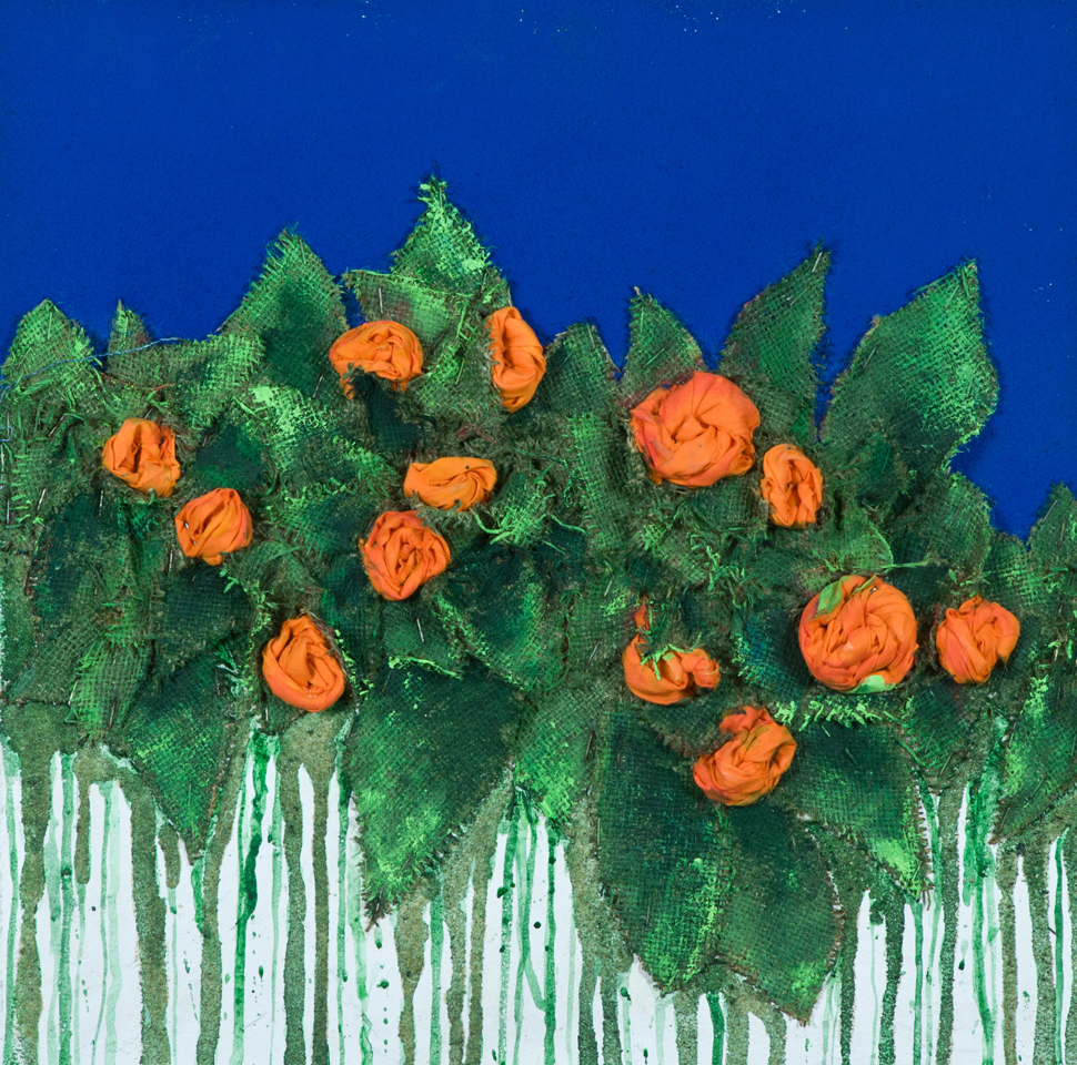 Giovanna Marino Roseto Tecnica mista con applicazioni su tavola, cm. 45x45 Sul verso: firma e titolo.