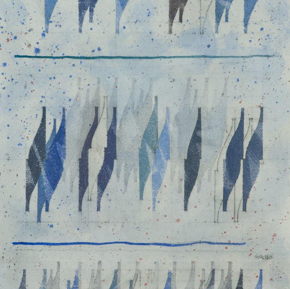 Enrico Sirello Studio per murale, 1999 Pigmenti su intonaco a pomice, cm. 40x40 Firmato in basso a destra. Sul verso: firma, data e titolo.