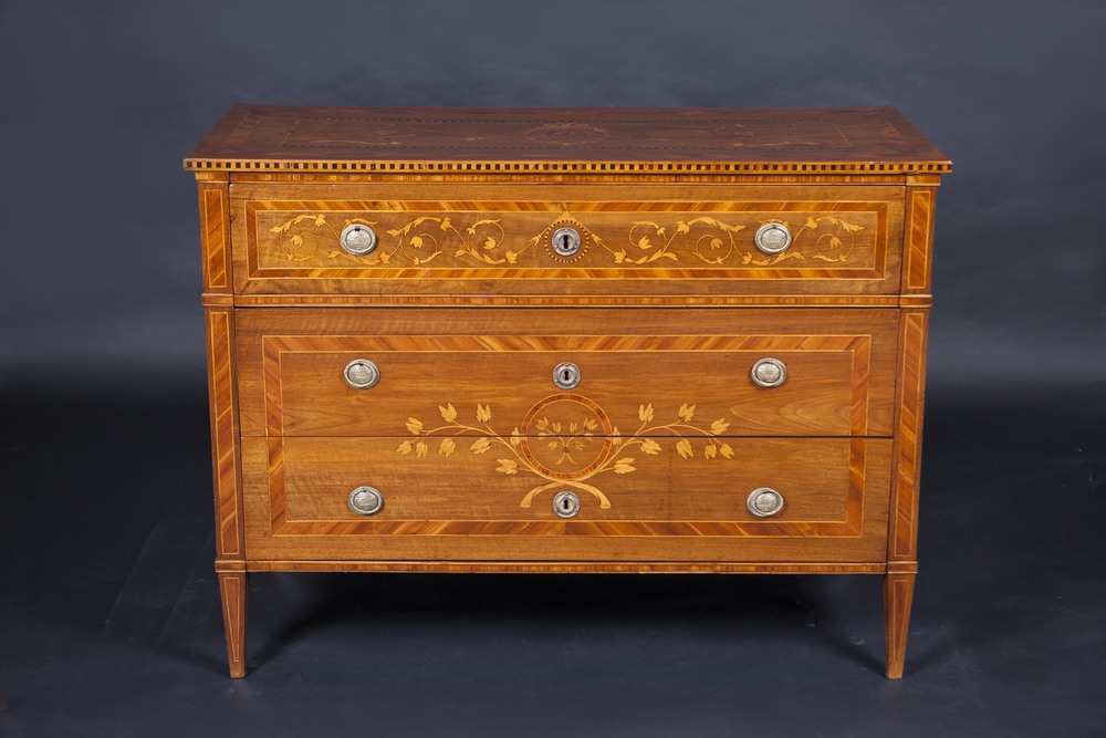 Lot 69 | CASSETTONE, Cassettone a tre cassetti in legno di noce lastronato ed...