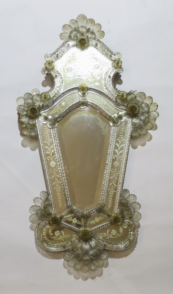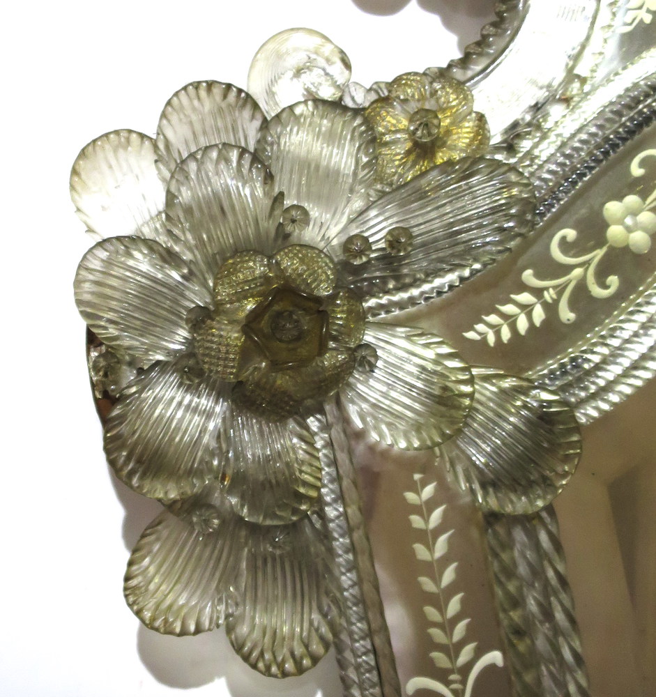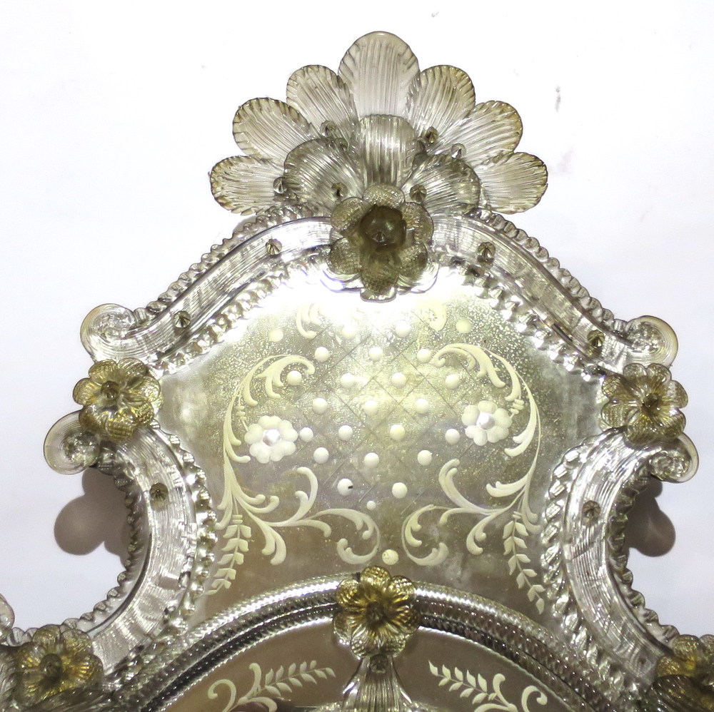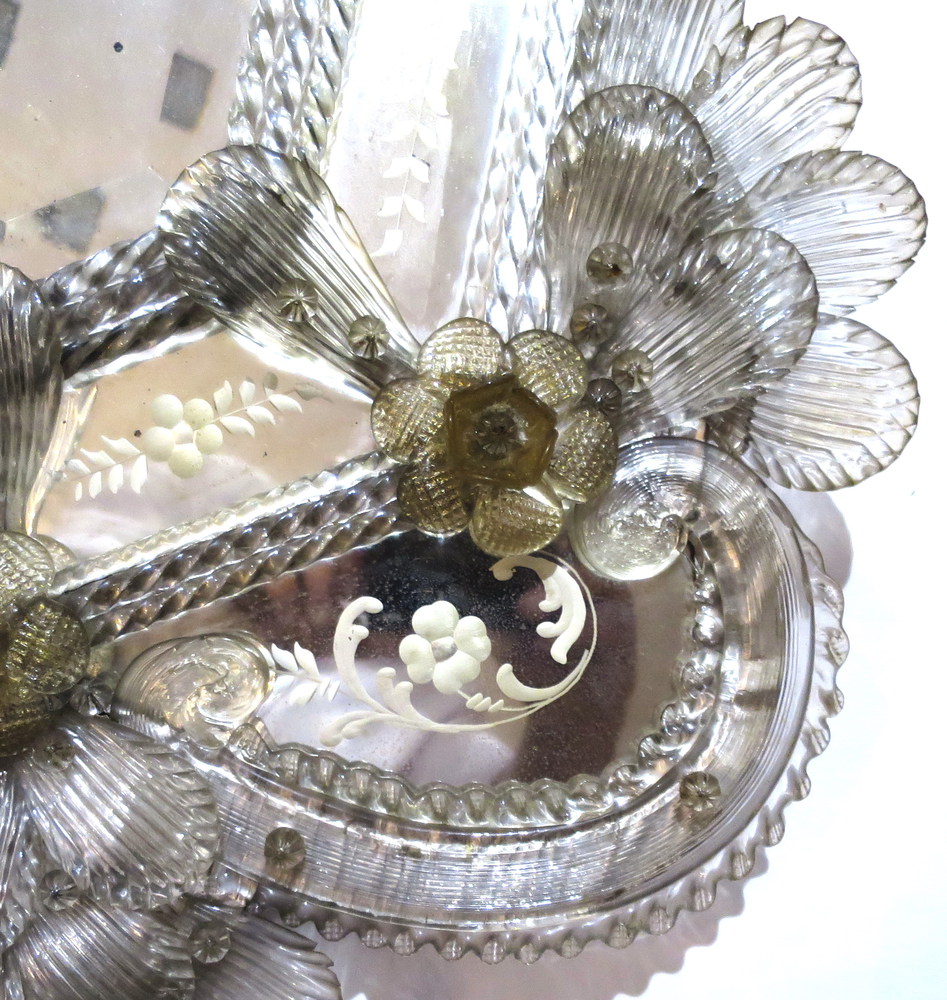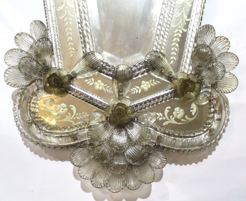SPECCHIERA, Specchiera con riserva centrale molata, tessere operate a decoro, vetro lumeggiato oro - Murano 1920 ca - cm 110 x 60