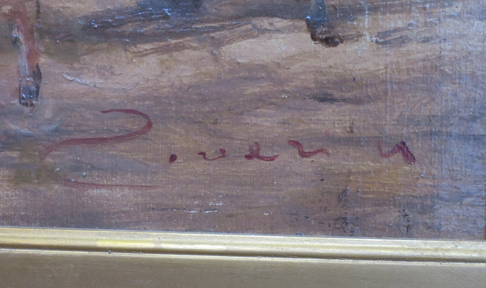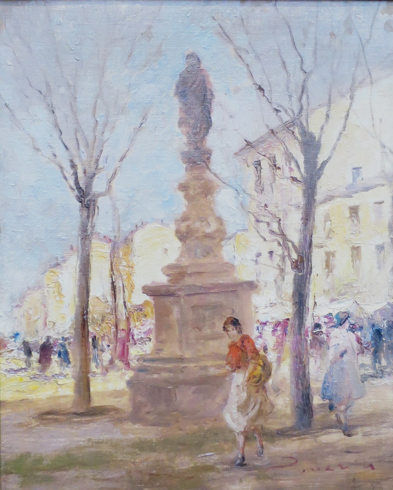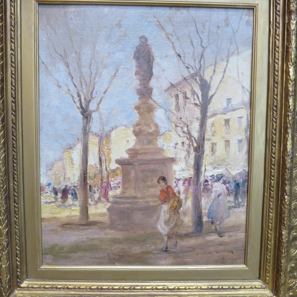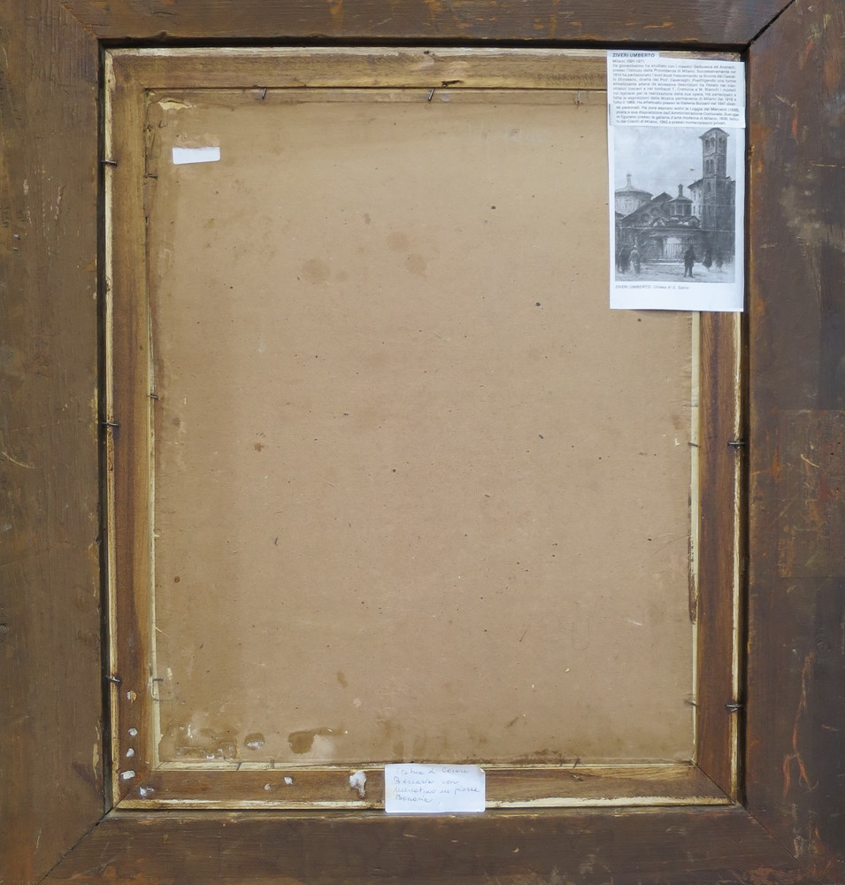UMBERTO ZIVERI, Umberto Ziveri (1891/1971) Olio su cartone raff. "Mercatino...
