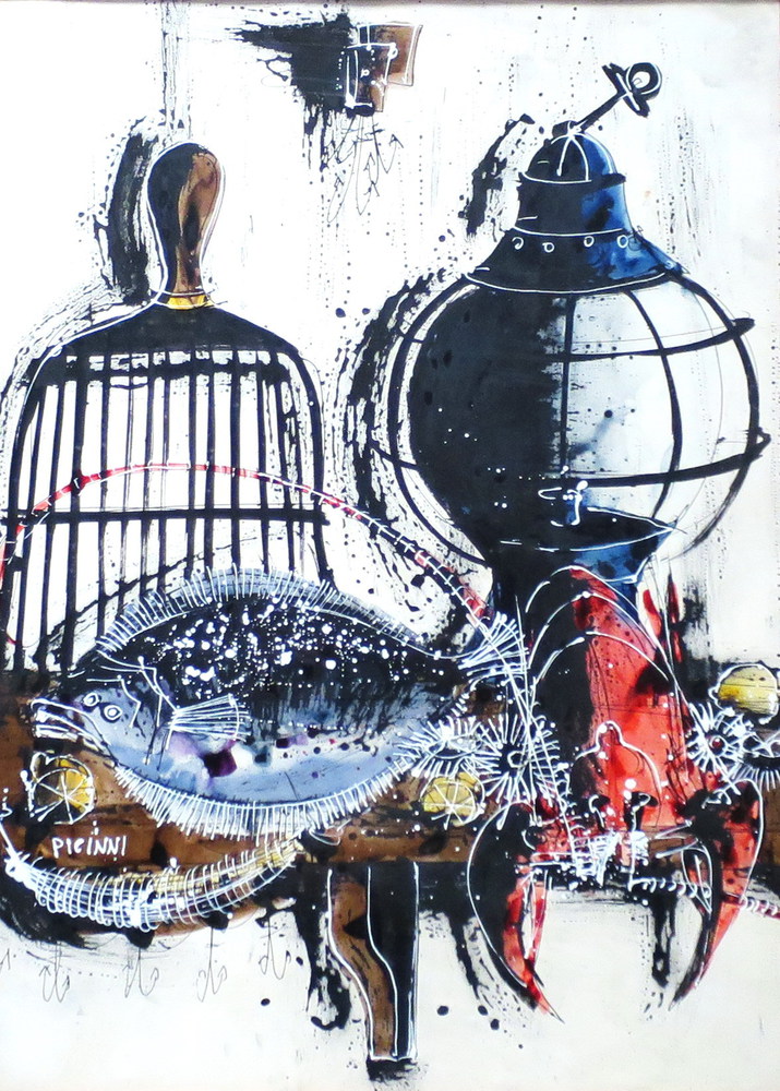 GENNARO PICINNI, Gennaro Picinni (1933) tecnica mista su carta raff. "Natura morta" - cm 52 x 71 - firmato in basso a sx