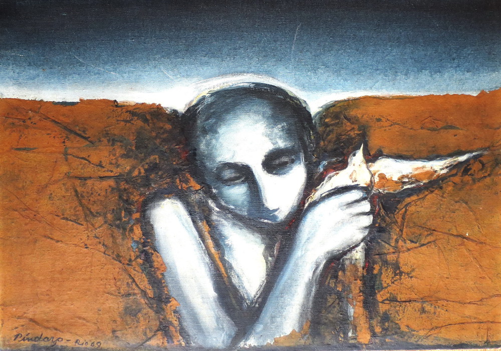PINDARO, Pindaro olio su tela raff. "volto con passero" - cm 70 x 50 - firmato e datato in basso a sx Rio '69