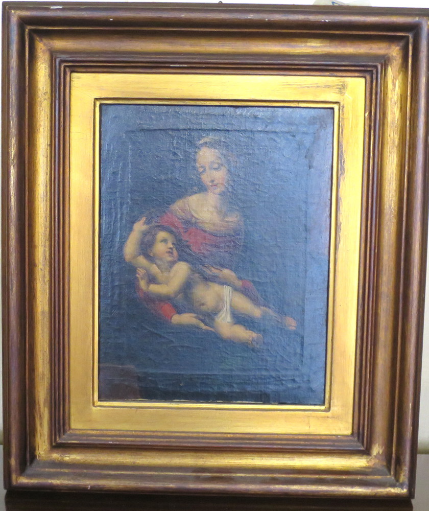 DIPINTO, Dipinto olio su tela raff. "Madonna con bambino" - cm 22 x 28 -...