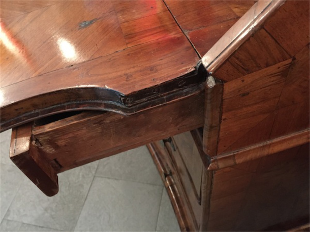 RIBALTA, Ribalta lastronata e radicata in legno di noce mossa al fronte - lombardo/veneta prima met� XVIII sec.