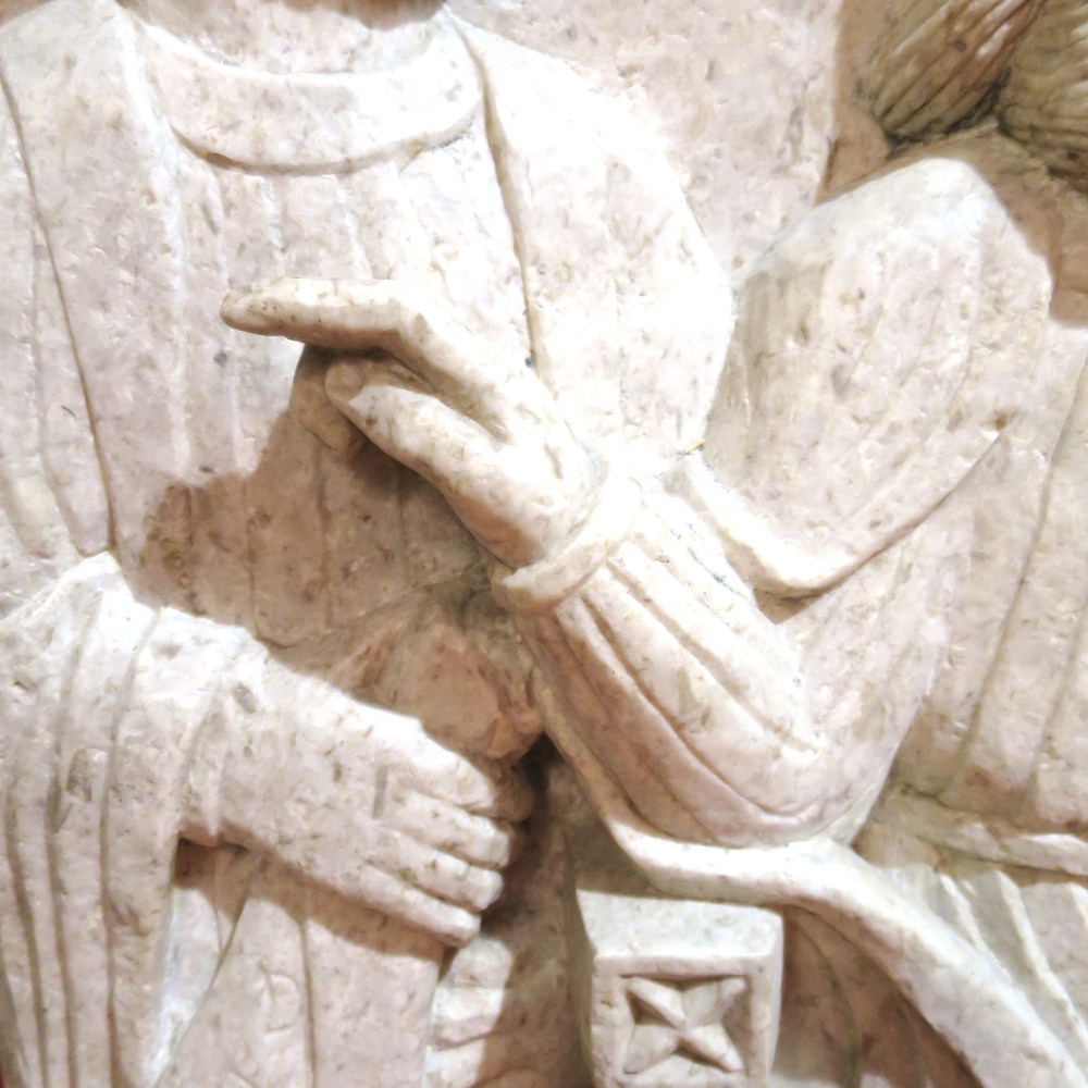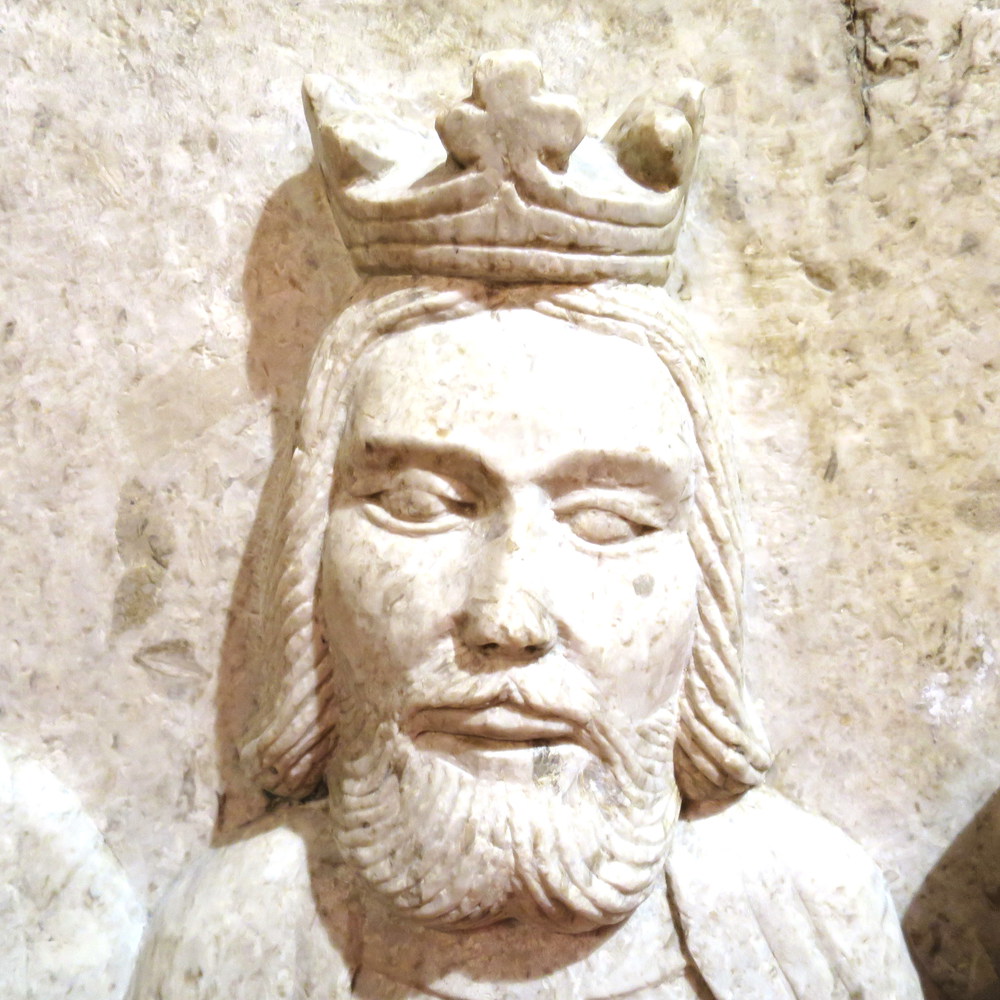 PIETRA, Bassorilievo da parete in pietra raff. "Sovrano e consigliere" - cm...