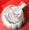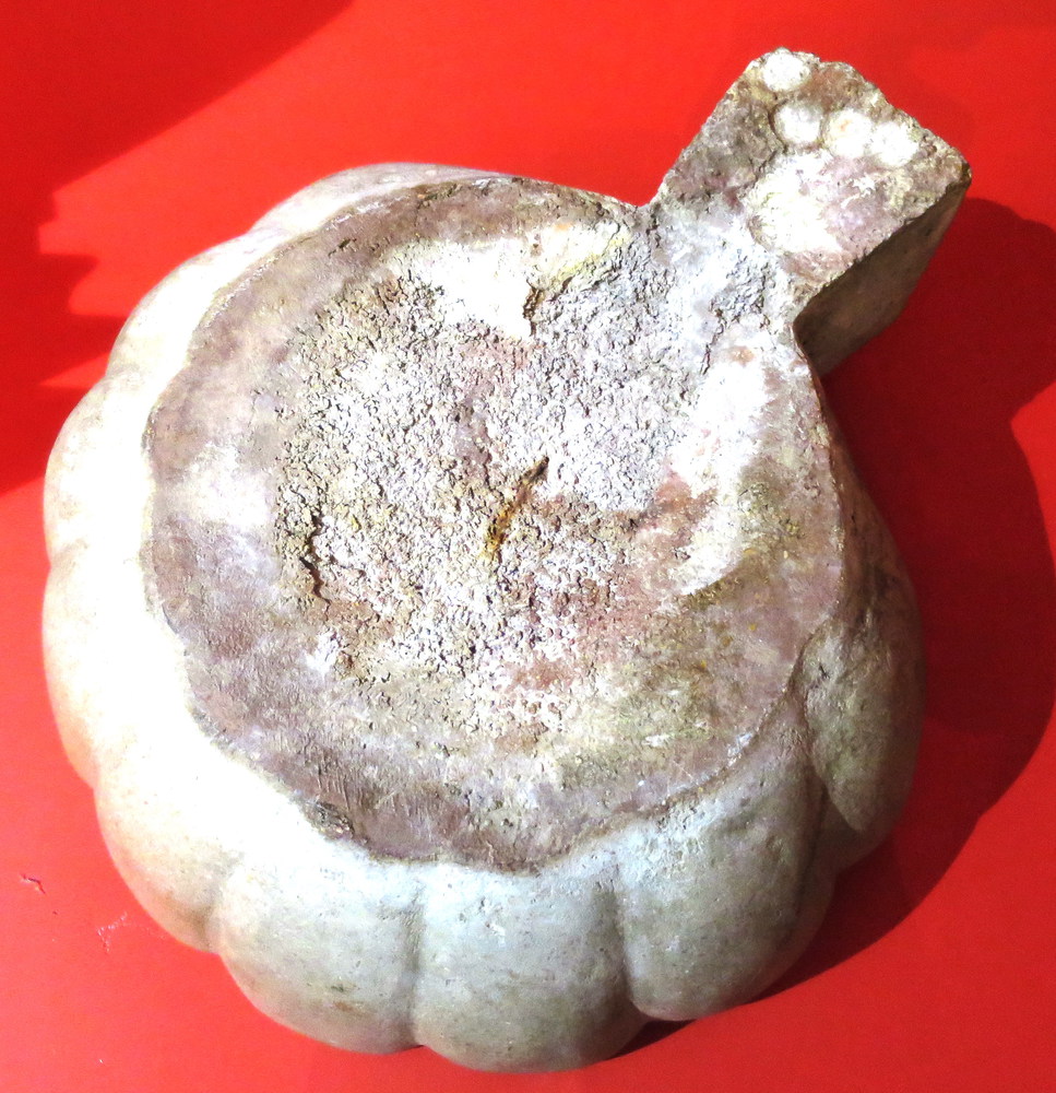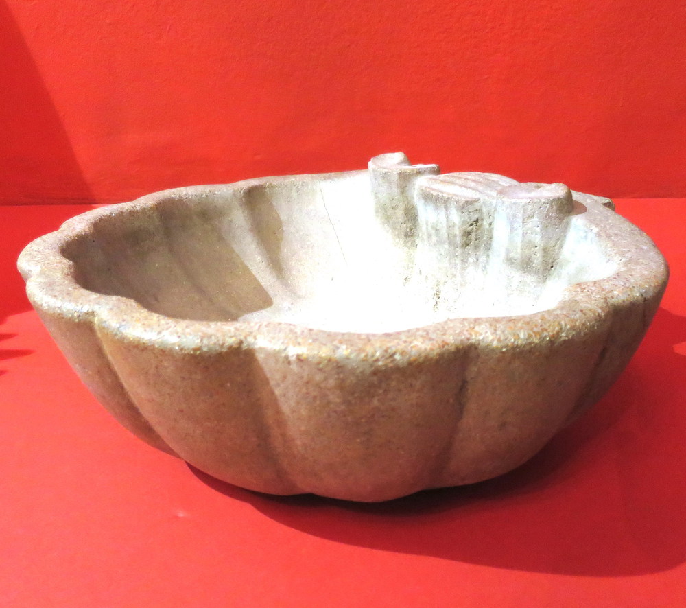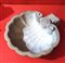 ACQUASANTIERA, Acquasantiera in pietra rossa sagomata a motivo di conchiglia - cm 42 x 40 H 14 cm