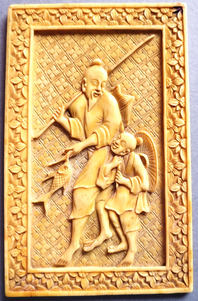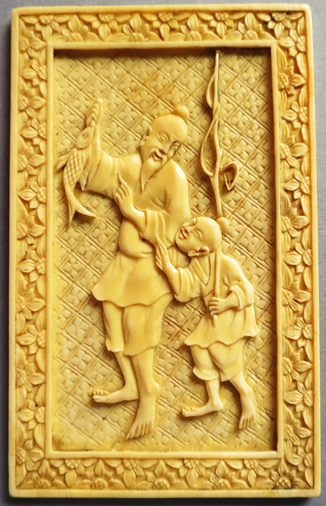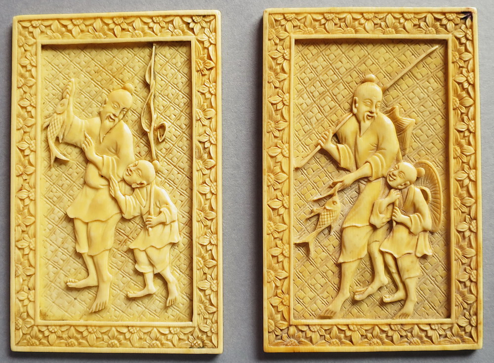 Lot 266 | COPPIA PLACCHE, Coppia di placche in avorio raff. "pescatore con bimbo" - cm...