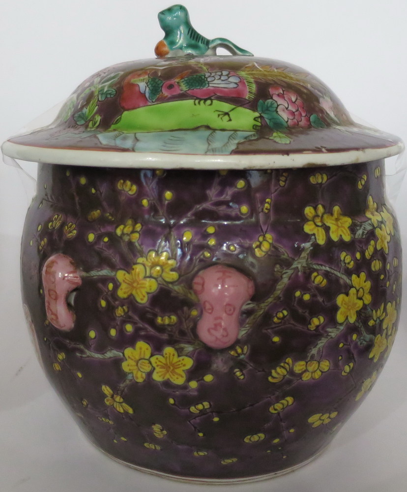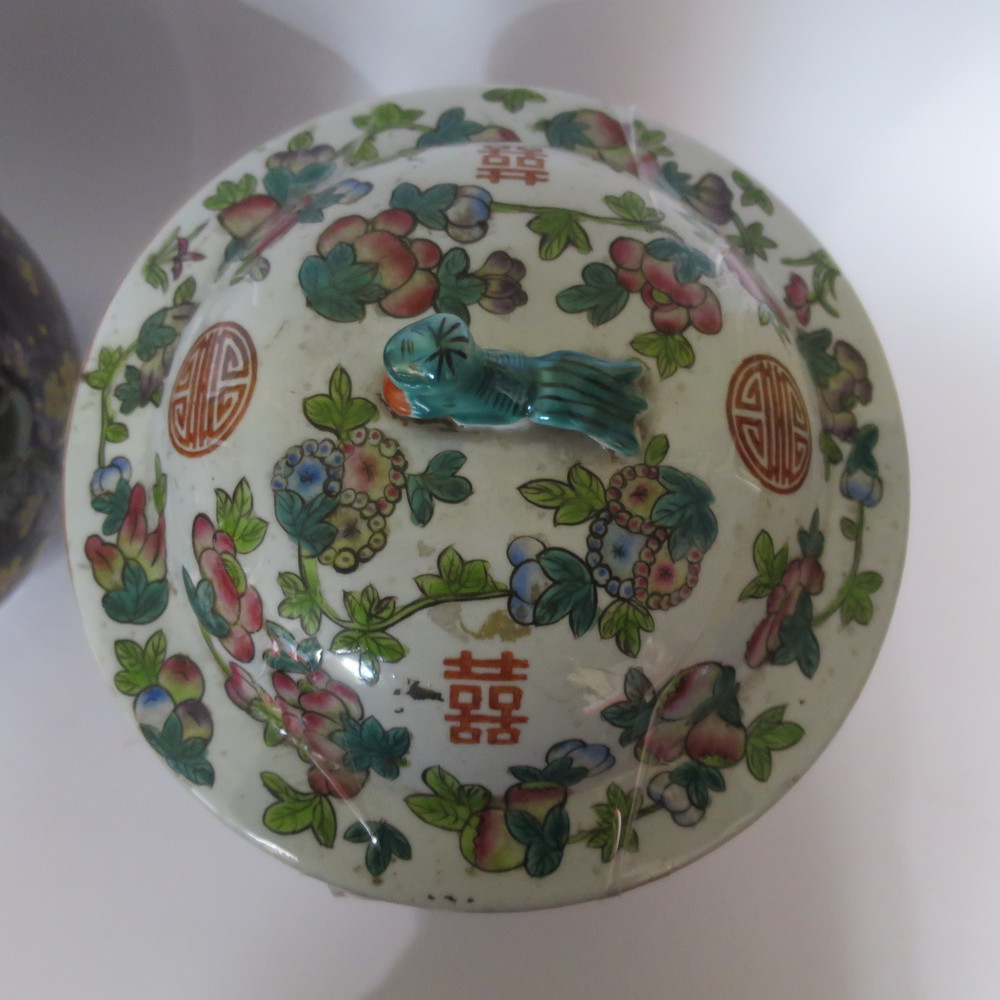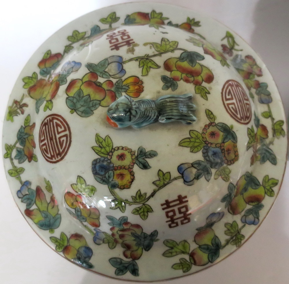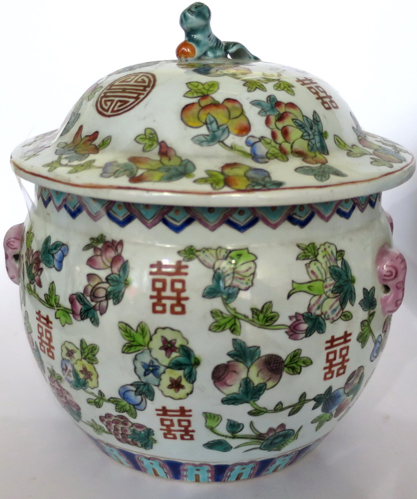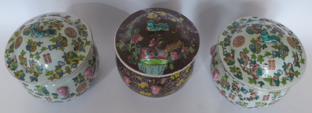 CINA, Tre potiches in porcellana - H 22.5 cm diam 21 cm - Cina XX sec-