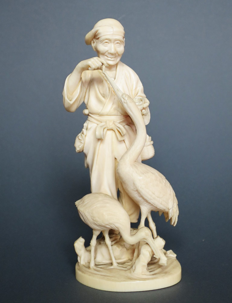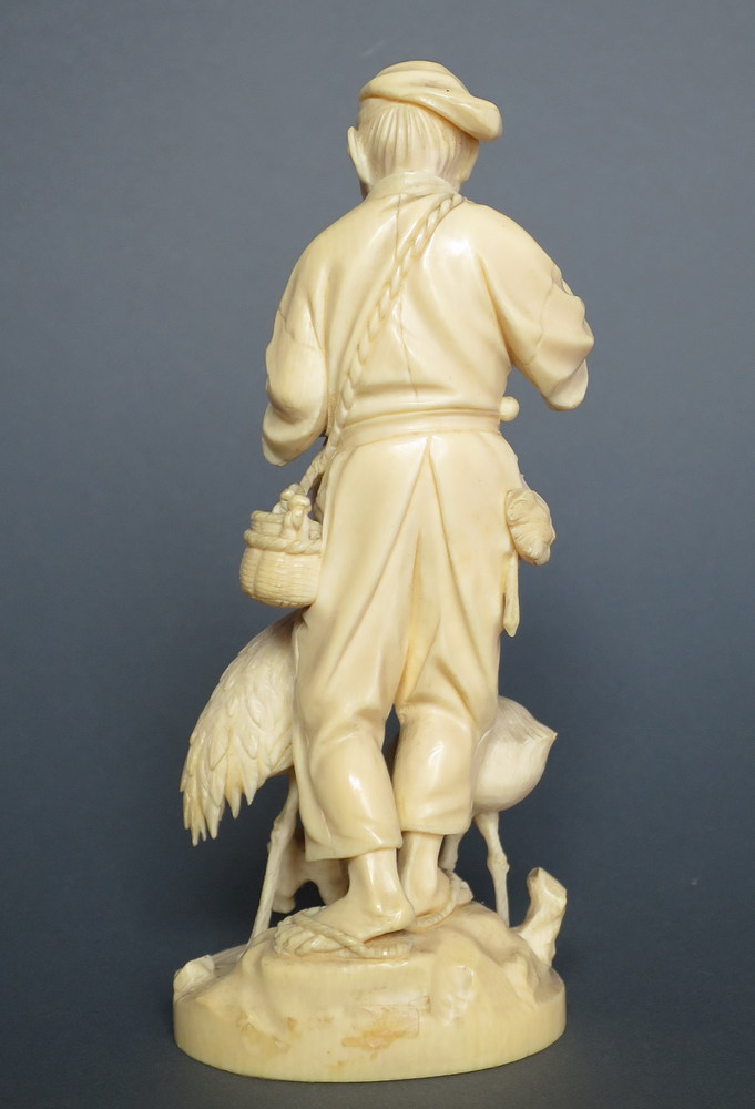 GIAPPONE, Avorio "contadino con fenicotteri" - H cm 15.5 - Giappone periodo...
