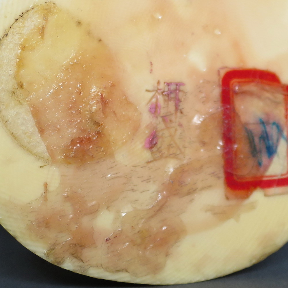 GIAPPONE, Avorio "contadino con fenicotteri" - H cm 15.5 - Giappone periodo Meiji - firmato