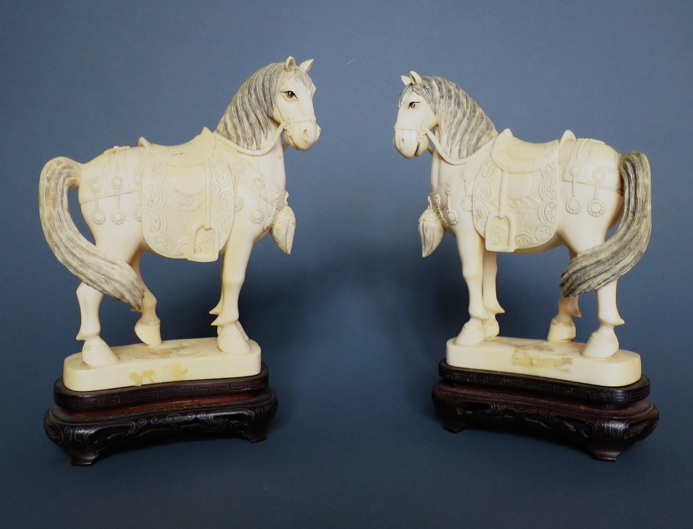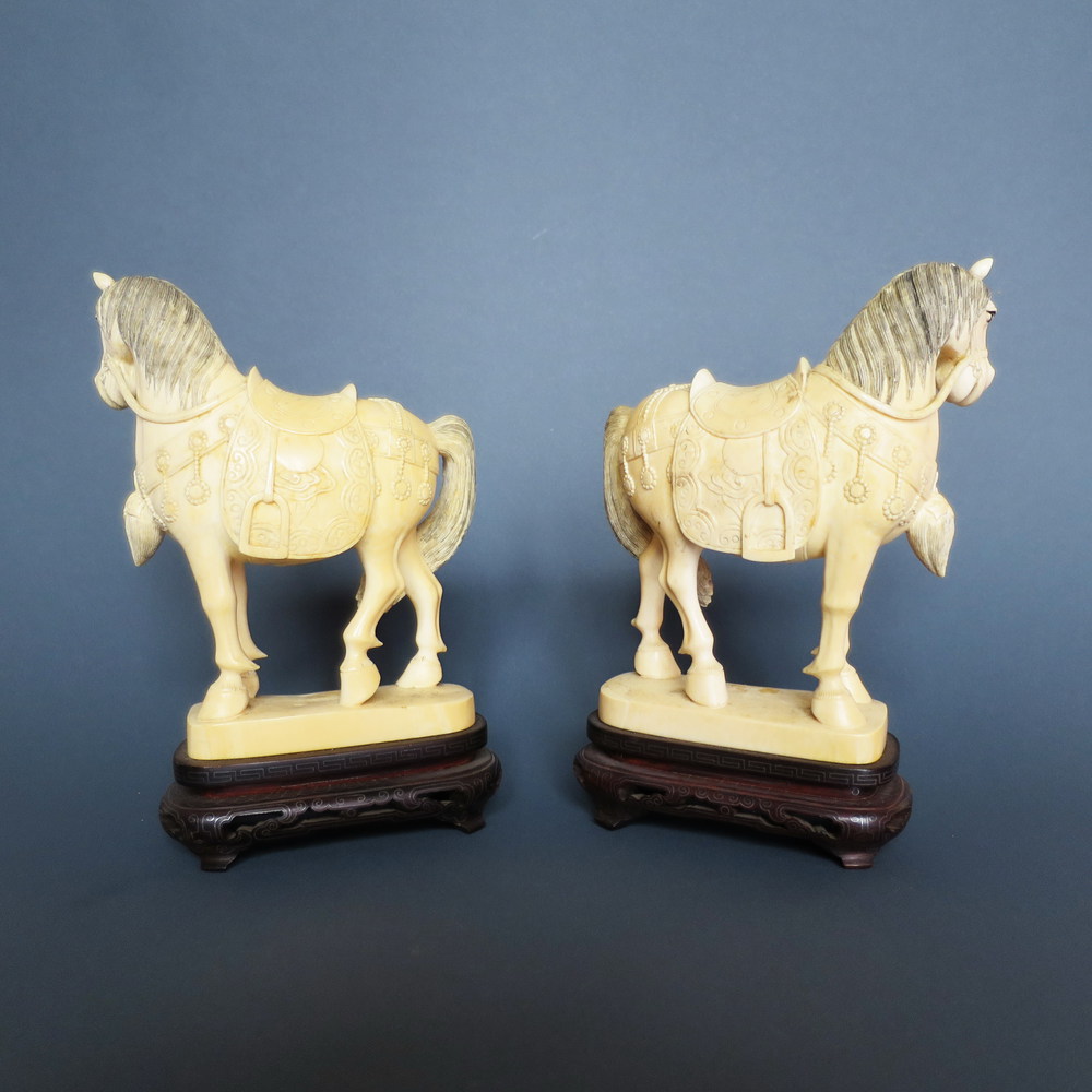 CINA, Avorio coppia di "cavallini" Cina H 16.3 cm XIX/XX sec.